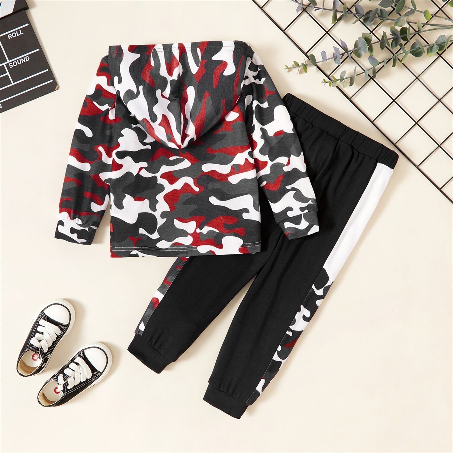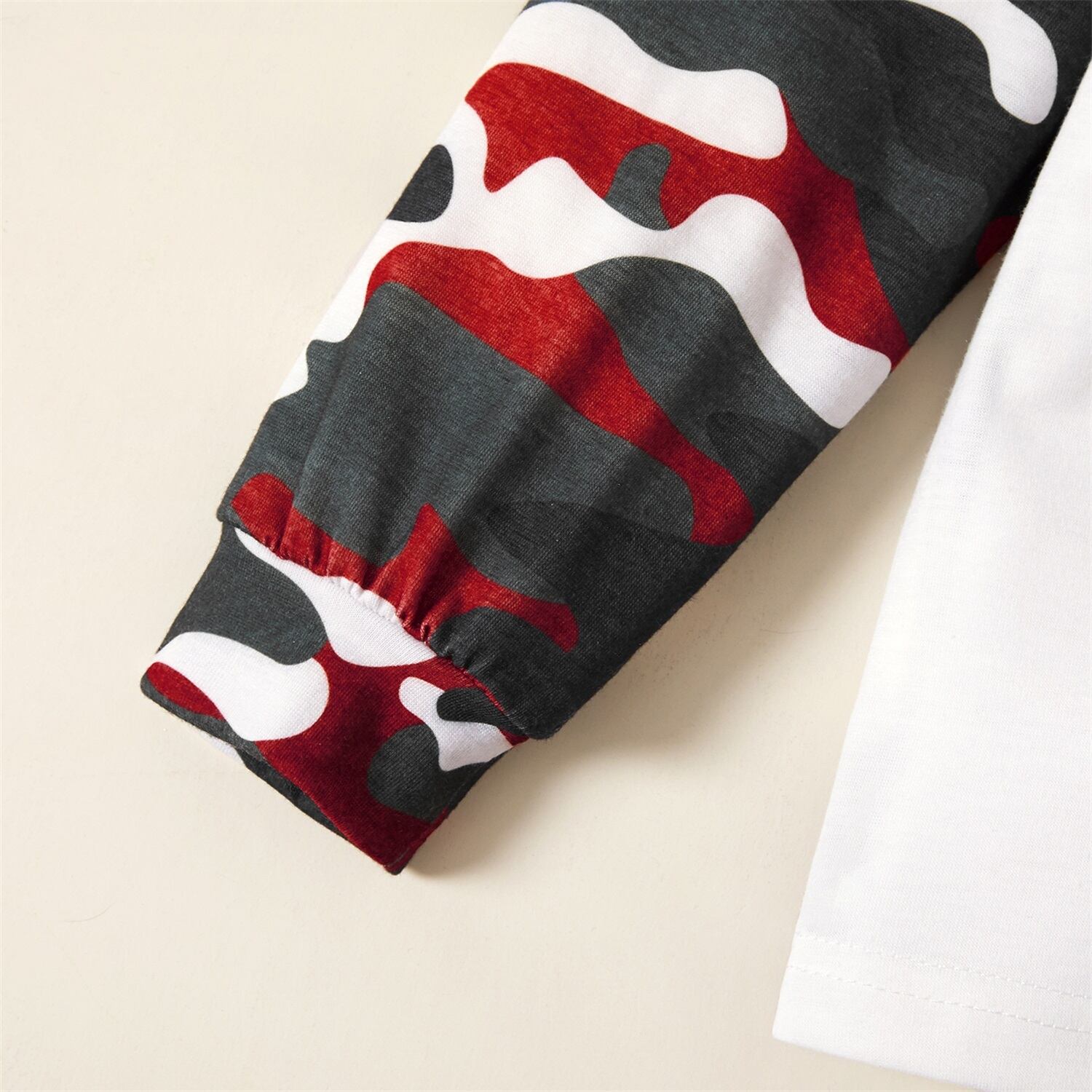 新作 PatPat 幼児 男の子 レター カモフラージュ プリント ステッチ パーカーと伸縮性のあるパンツのセット