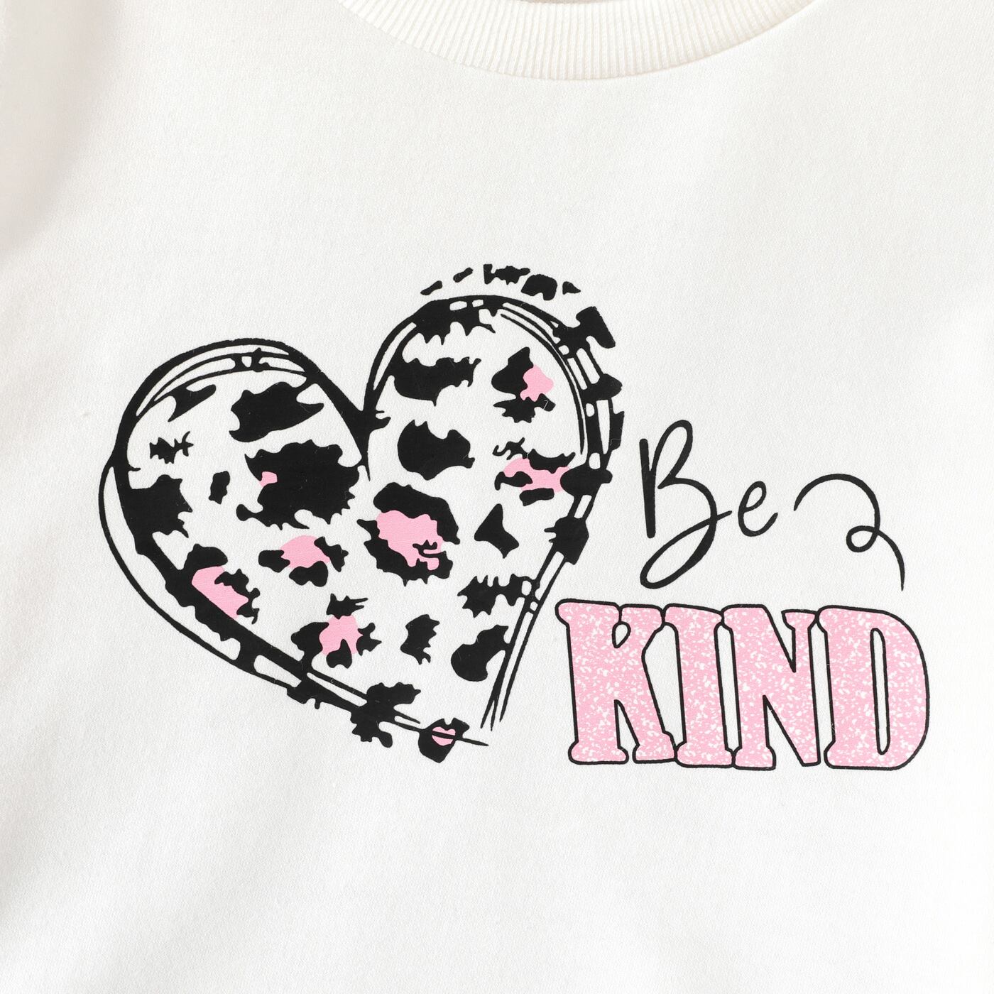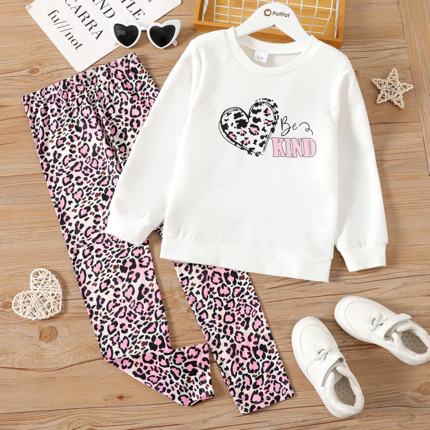 新作 PatPat 2 ピース キッド ガール レター ハート プリント ホワイト スウェットシャツとレオパード プリント パンツ セット