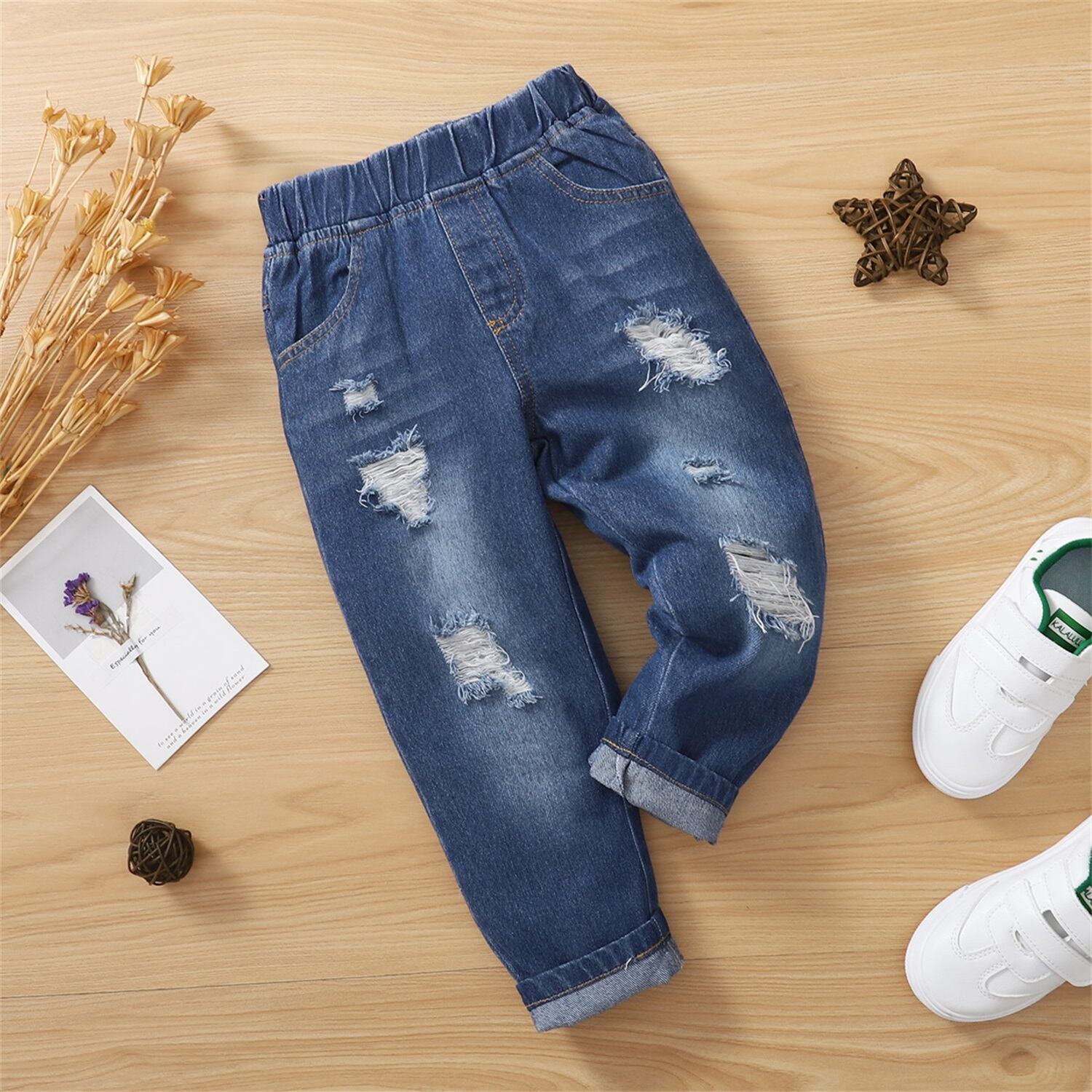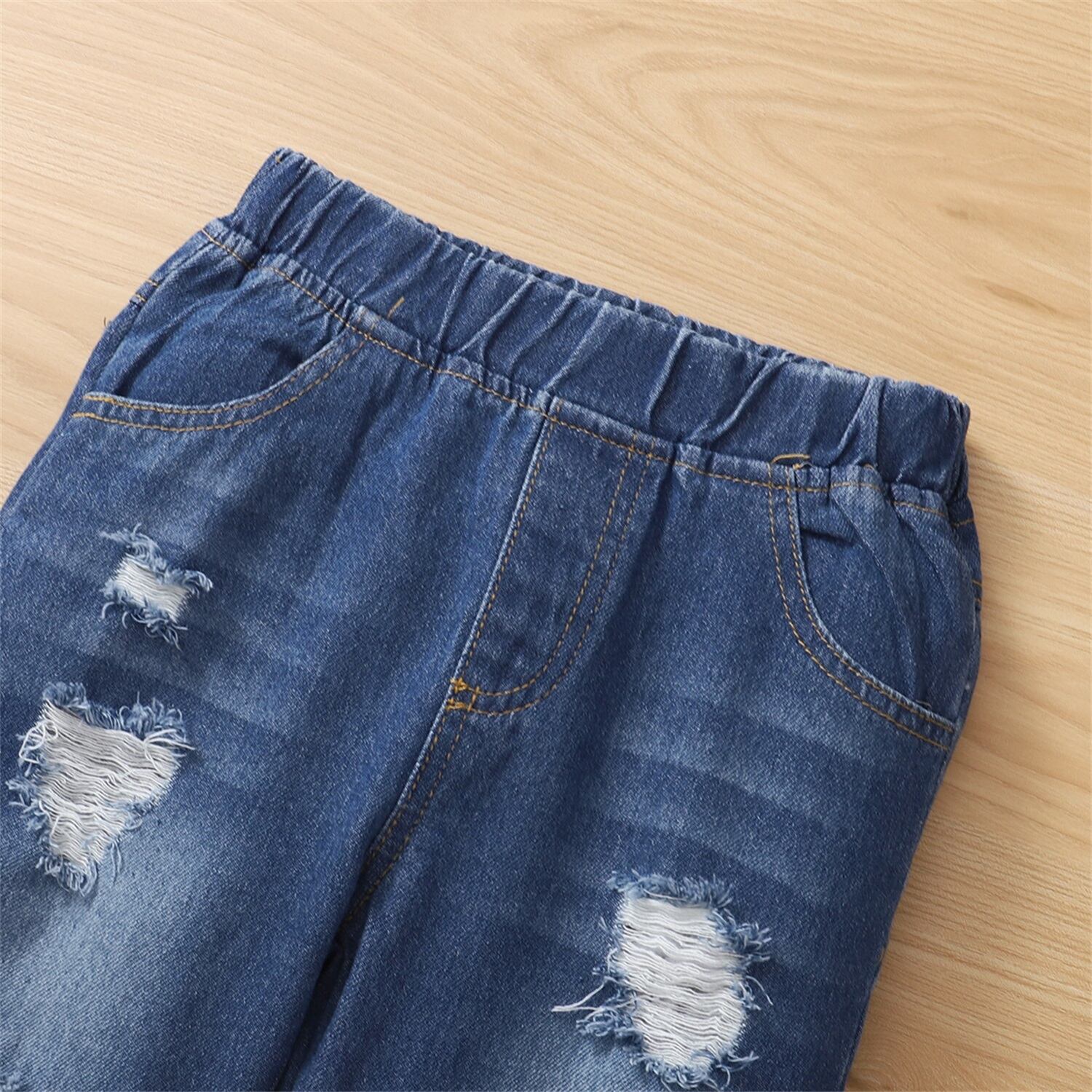 新作 PatPat 幼児 女の子/男の子 リップドジーンズ デニムパンツ ポケット付き