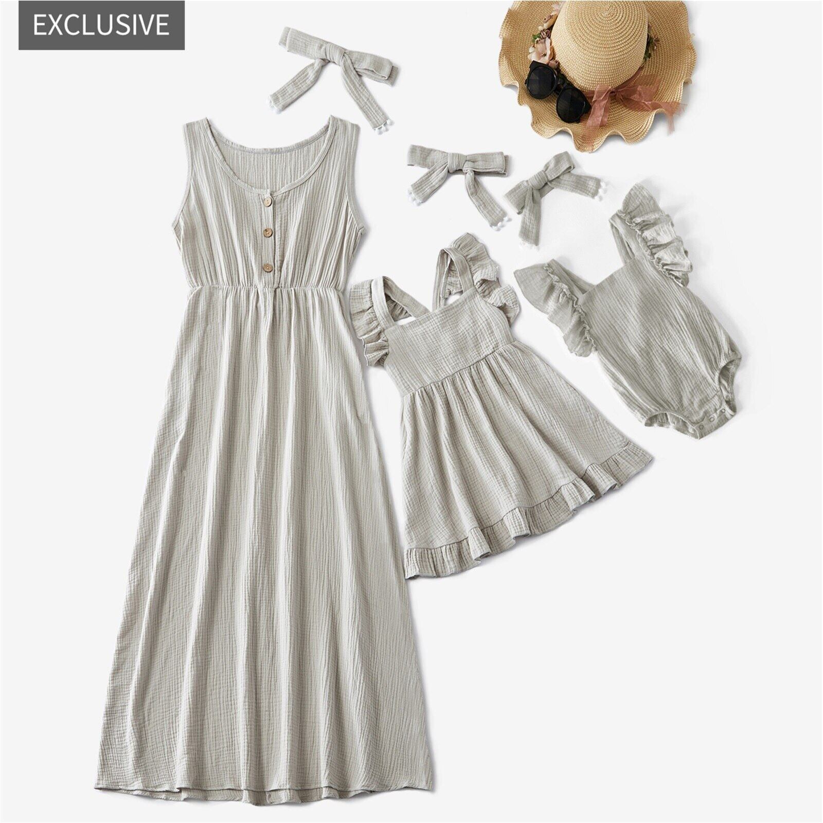 新作 PatPat モザイク 無地 コットン 100% マッチング マキシドレス ヘッドバンド付き