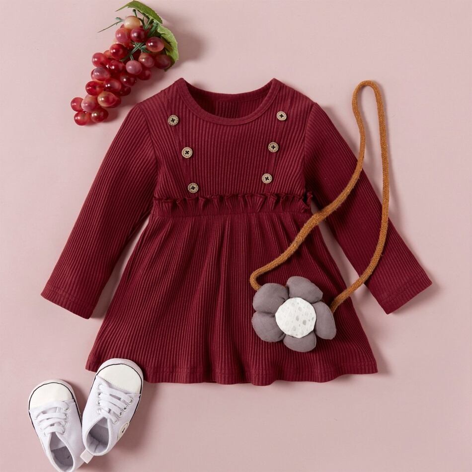 新作 ベビー/幼児 無地 長袖 フリルワンピース