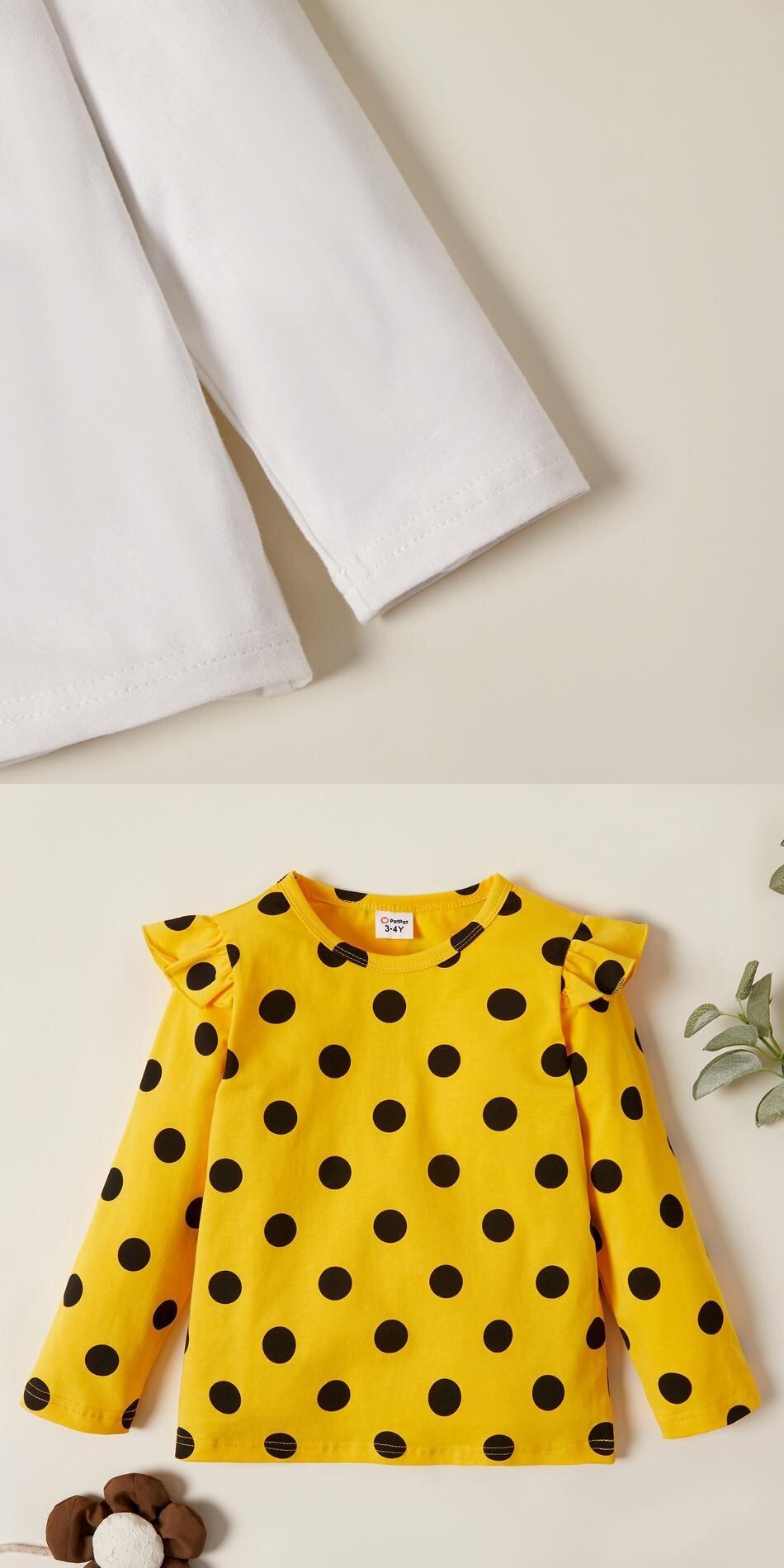 新作 PatPat 秋と春の 3 パックの幼児の女の子の花柄と水玉の T シャツ セット子供用