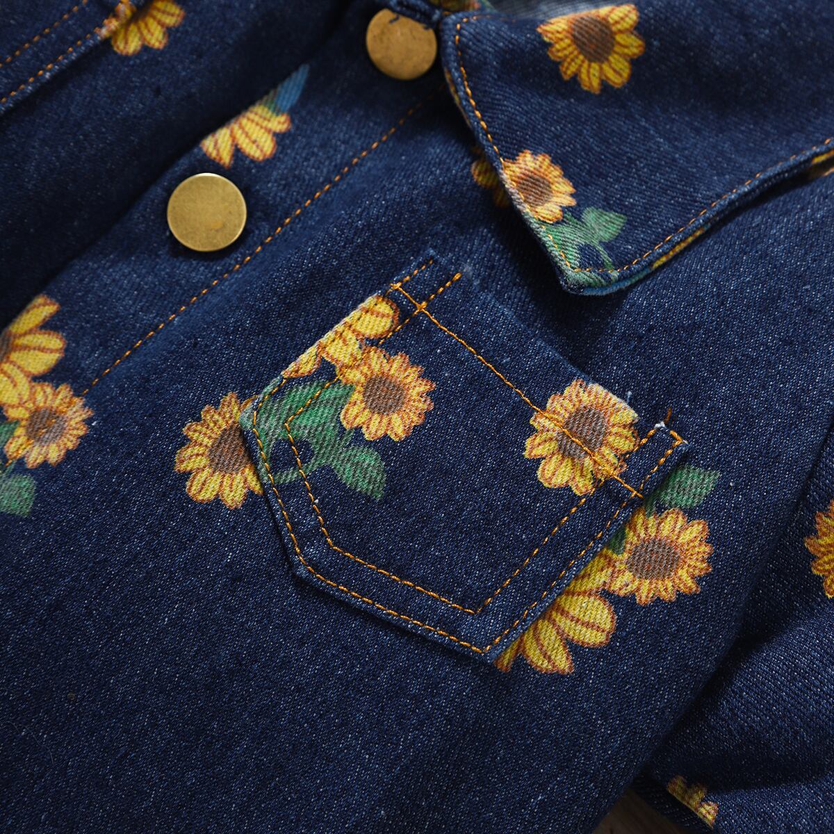 新作 PatPat 幼児 男の子/女の子 トレンディな 100% コットン 花柄 デニム ジャケット キッズ コート 秋冬 子供用 暖かい アウター