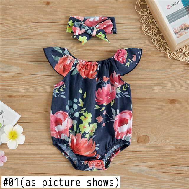 新作 PatPat 2020 夏 花柄 ボディスーツとカチューシャ セット ベビー 女の子 ワンピース