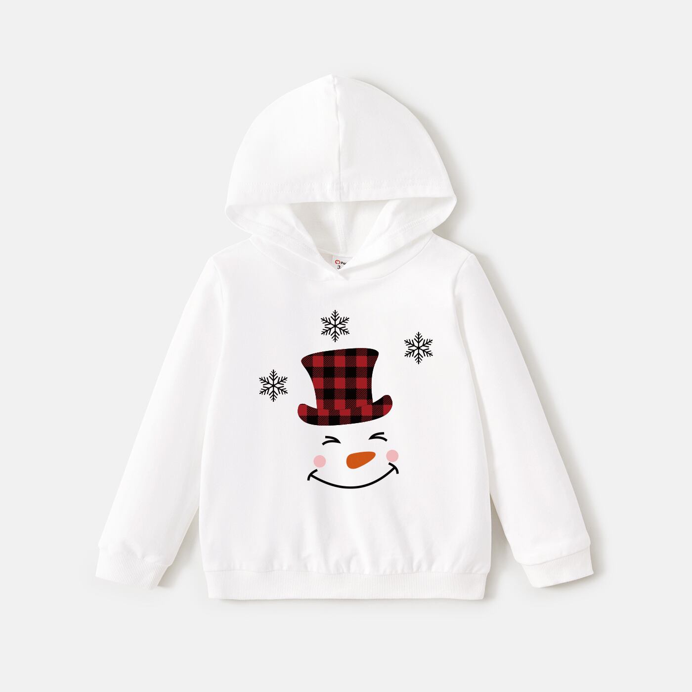 新作 PatPat クリスマス雪だるまとレター プリント ホワイト家族マッチング綿 100% 長袖フード付きスウェットシャツ
