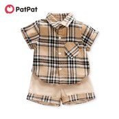 新作 PatPat 2pcs トドラー ボーイ チェック柄 100% コットン シャツ & スプライス ショーツ セット