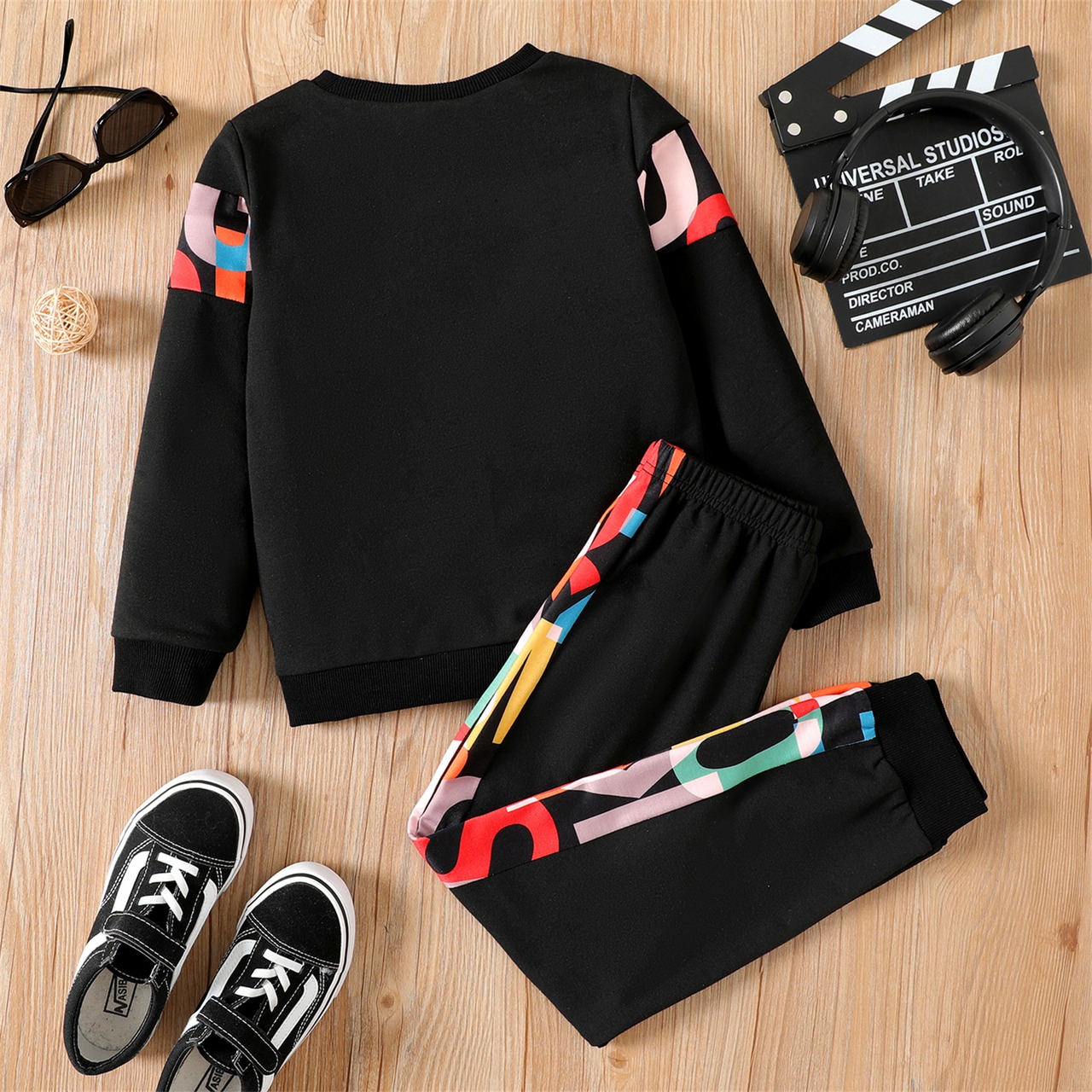 新作 PatPat 2ピース キッド ボーイ レタープリント カラーブロック プルオーバー スウェットシャツと伸縮性パンツセット