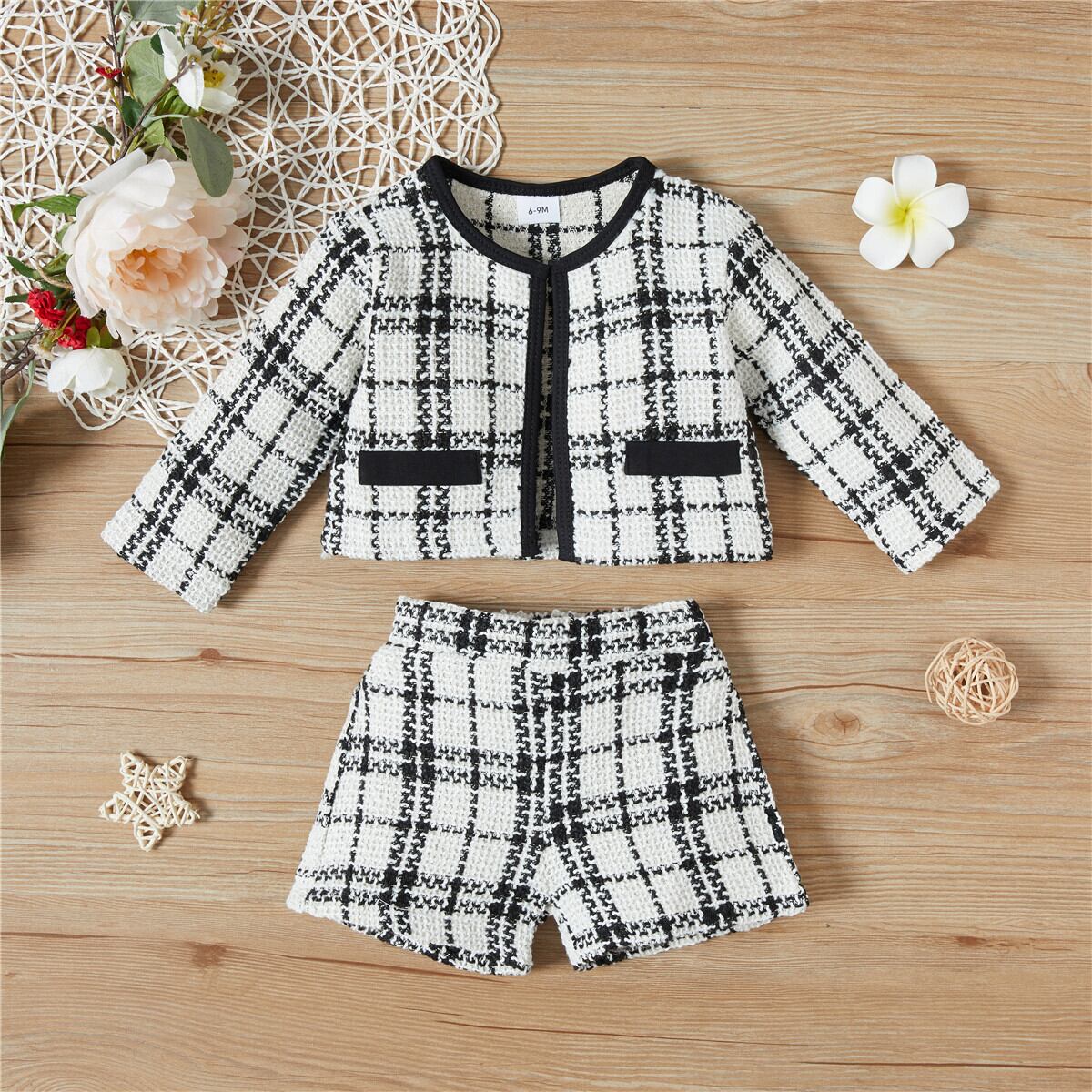 新作 PatPat 2点セット チェック柄 丸首 長袖 ホワイト ベビーセット