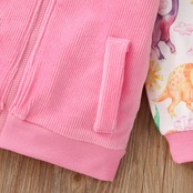新作 PatPat 幼児の女の子の恐竜レインボー プリント カラーブロック ジッパー ボンバー ジャケット