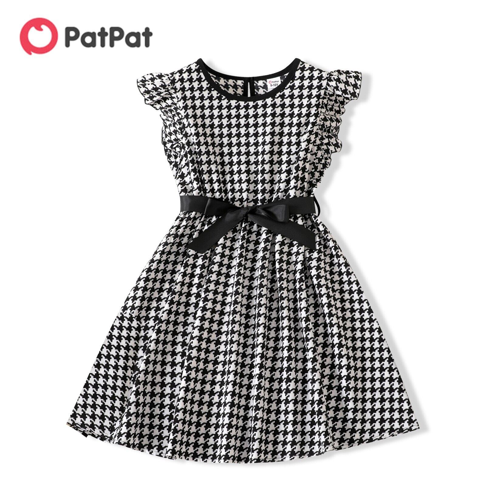 新作 PatPat Kid Girl ハウンドトゥース フラッタースリーブ ベルト付きドレス