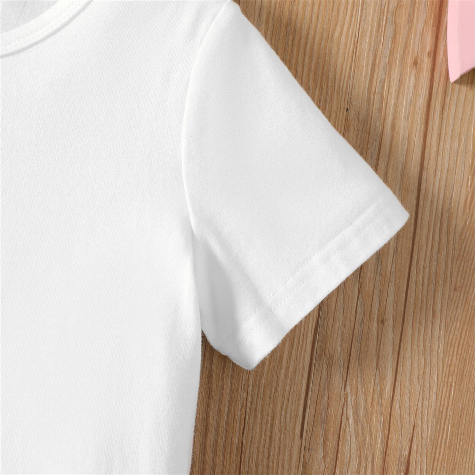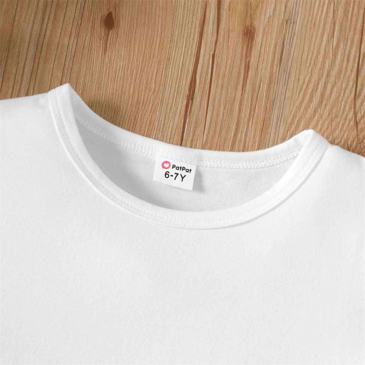 新作 PatPat キッド ガール レター カートゥーン プリント 半袖 ホワイト コットン ティー