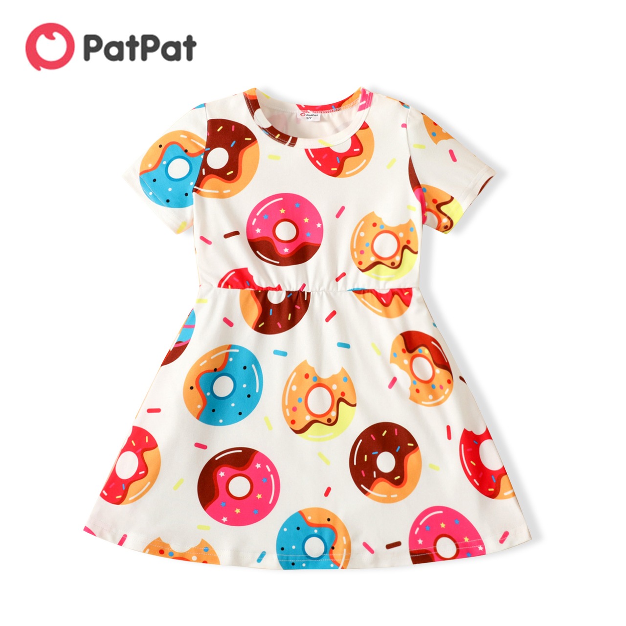 新作 PatPat 幼児 女の子 フード ドーナツ プリント 半袖 ドレス