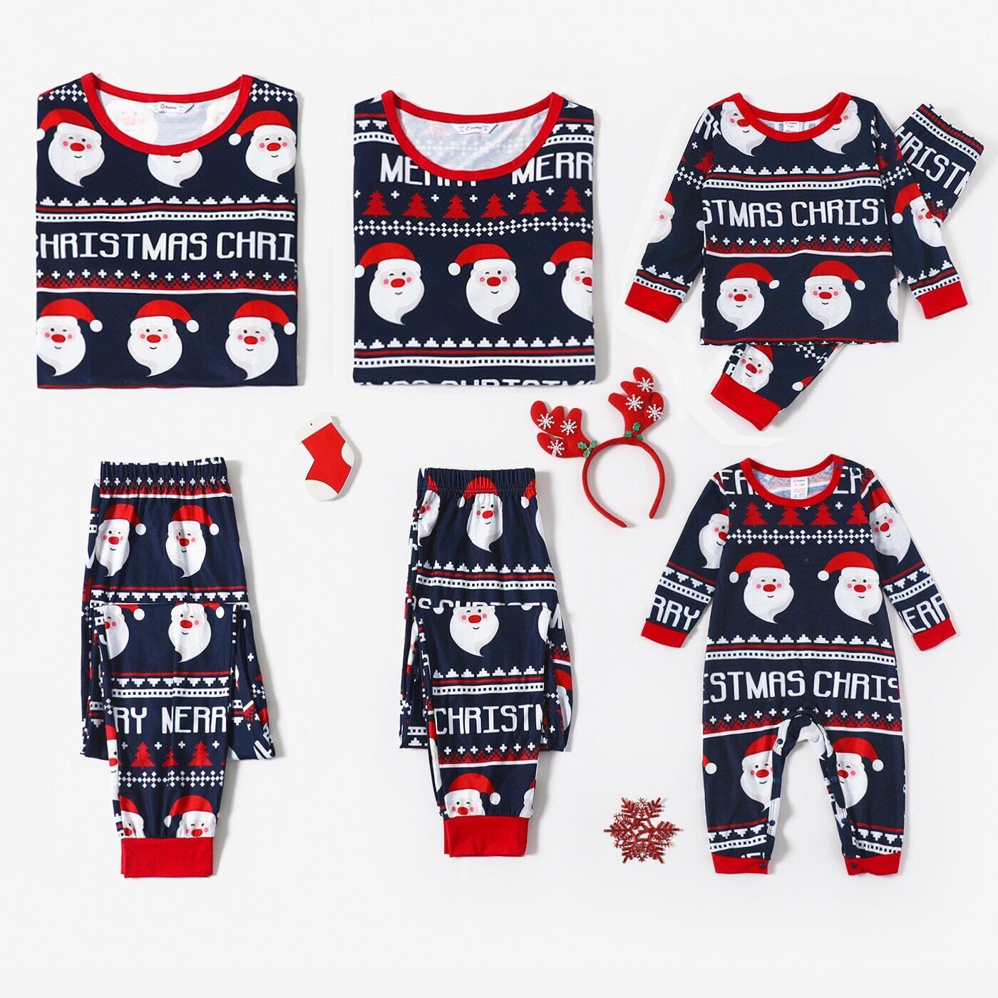 新作 PatPat クリスマス オールオーバーサンタとレタープリント ファミリーお揃い長袖パジャマセット (防炎)