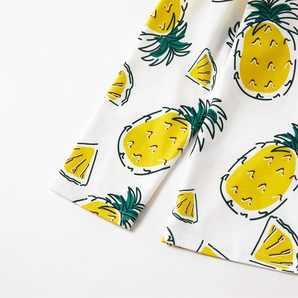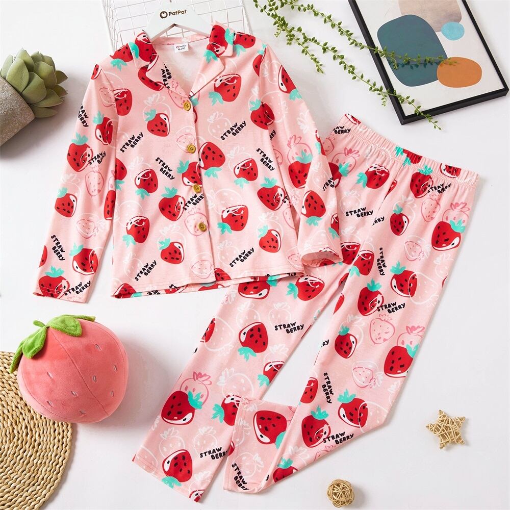 新作 PatPat 2 ピース キッド ガール/キッド ボーイ パジャマ セット フルーツ ストロベリー/パイナップル プリント ボタン デザイン ラペル カラー トップと伸縮性パンツ