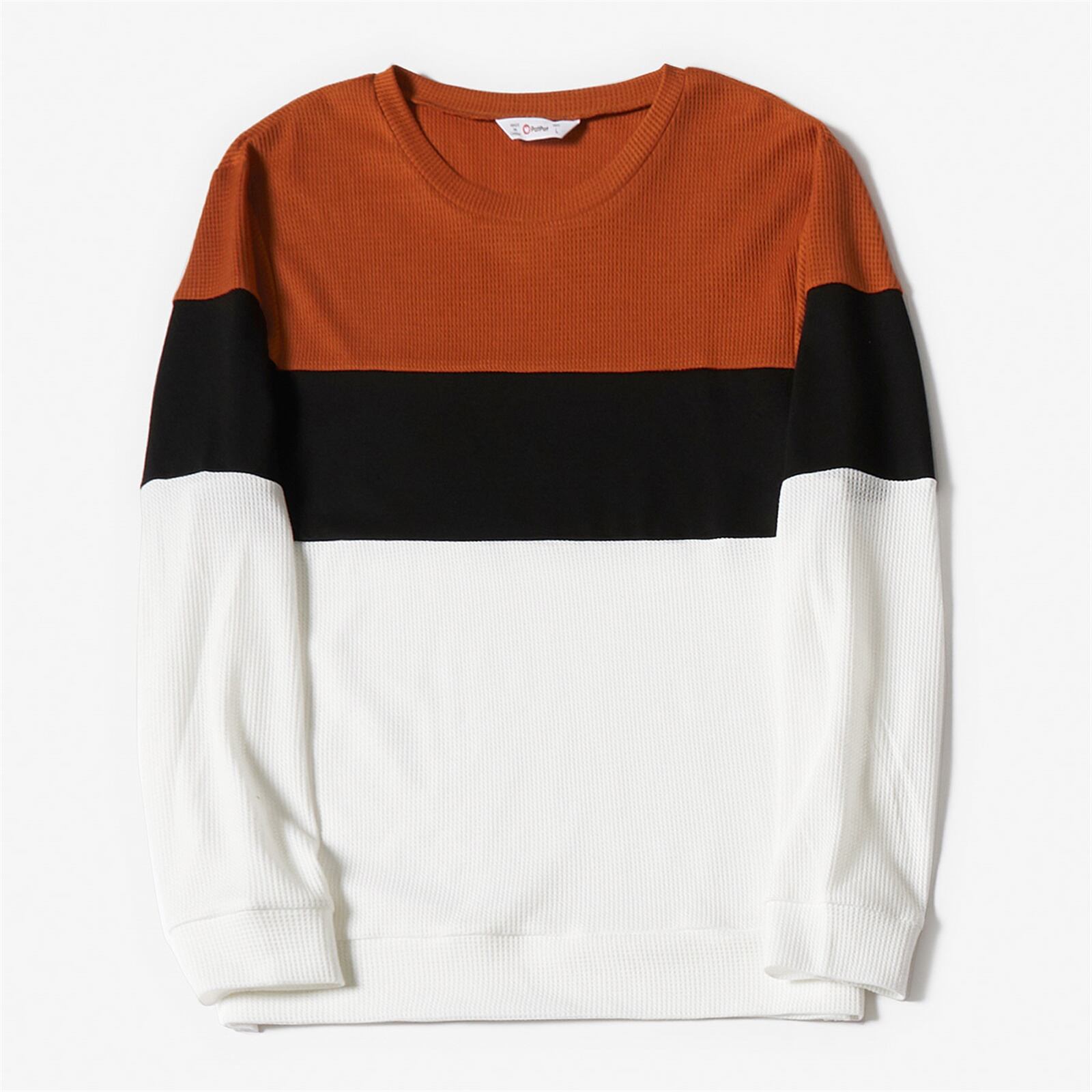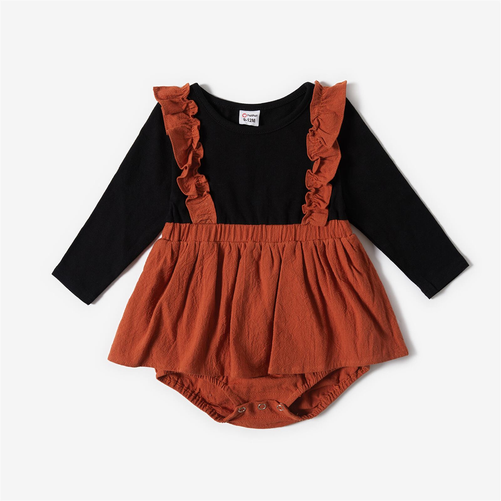 新作 PatPat ファミリーマッチング衣装 カップル衣装 コットン 長袖 スプライシング ミディ レディースとガールドレス ブラック スウェットシャツセット