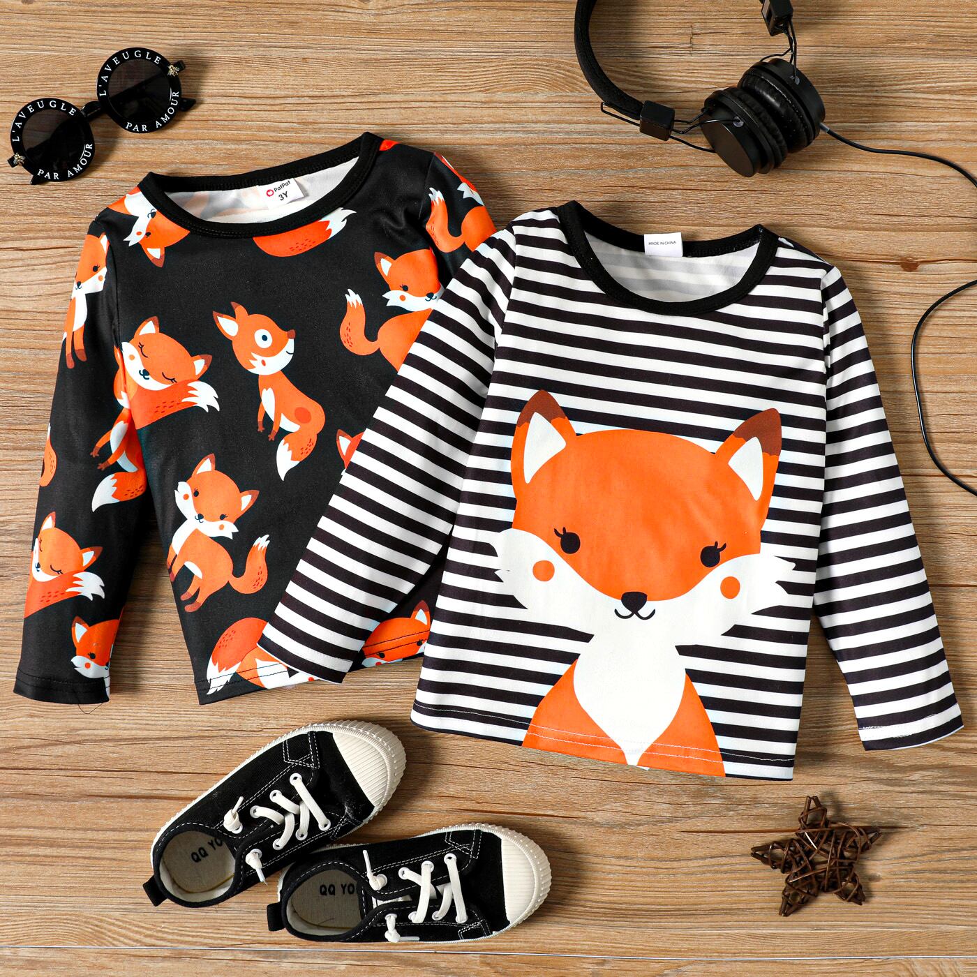 新作 PatPat トドラーボーイ フォックスプリント ロングスリーブTシャツ