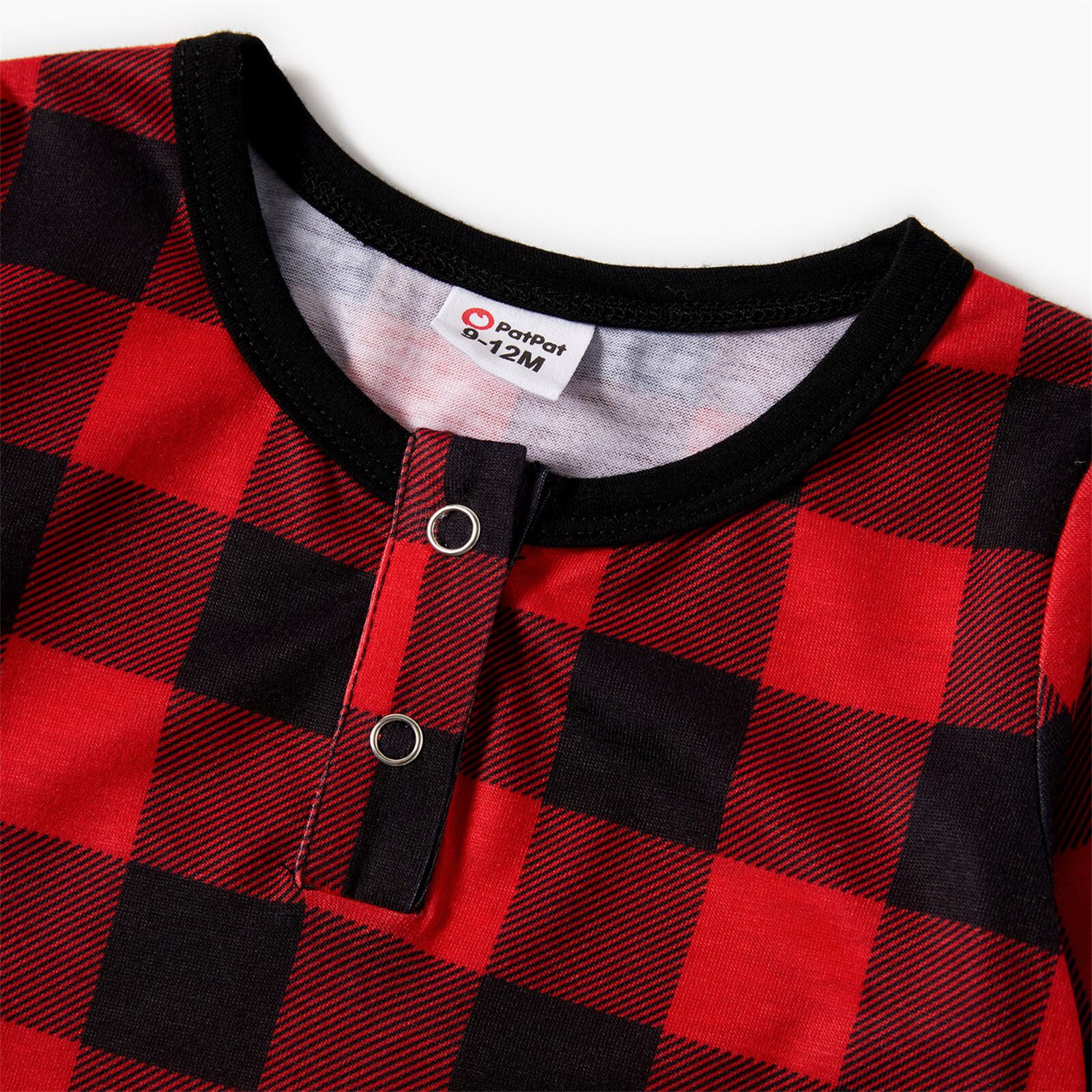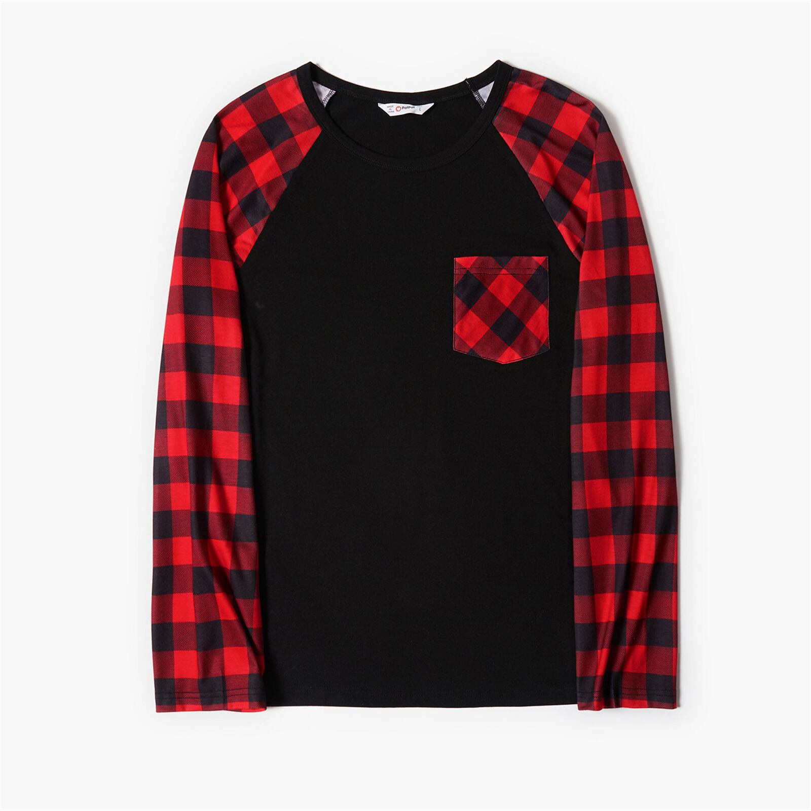 新作 PatPat クリスマス レッド チェック柄 ファミリーマッチング 長袖 ツイストノット ドレスとTシャツ セット
