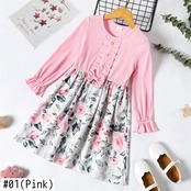新作 PatPat Kid Girl フリル ボタン フローラル プリント スプライス ロングスリーブ ドレス