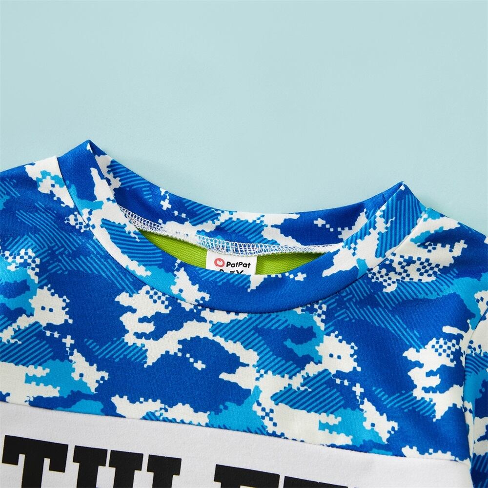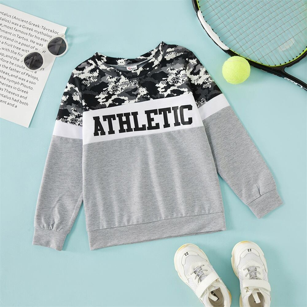 新作 PatPatable Kid Boy レタープリント カモフラージュ カラーブロック プルオーバー スウェットシャツ