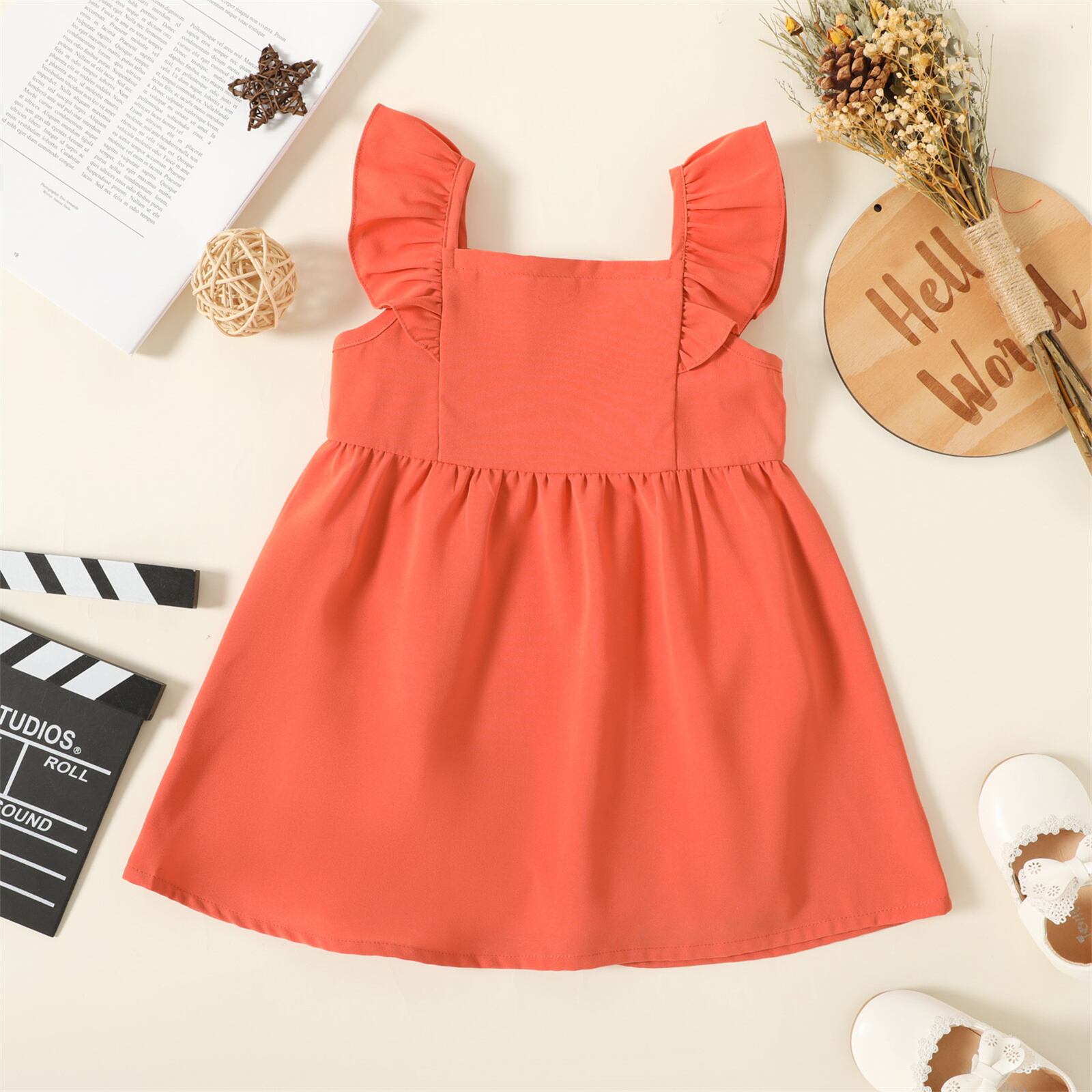 新作 PatPat トドラーガール フローラルプリント/コーラルレッド スクエアネック ボタンフラッタースリーブドレス