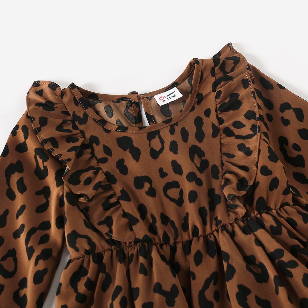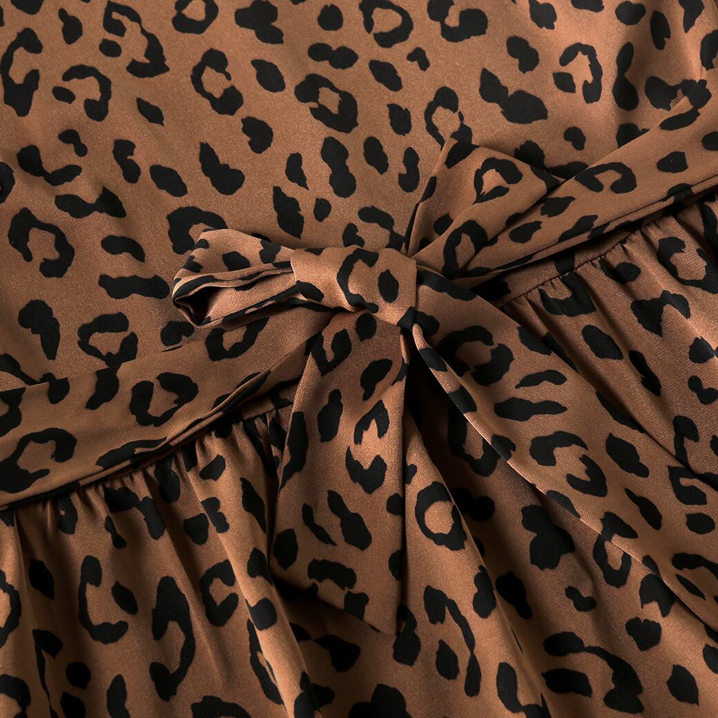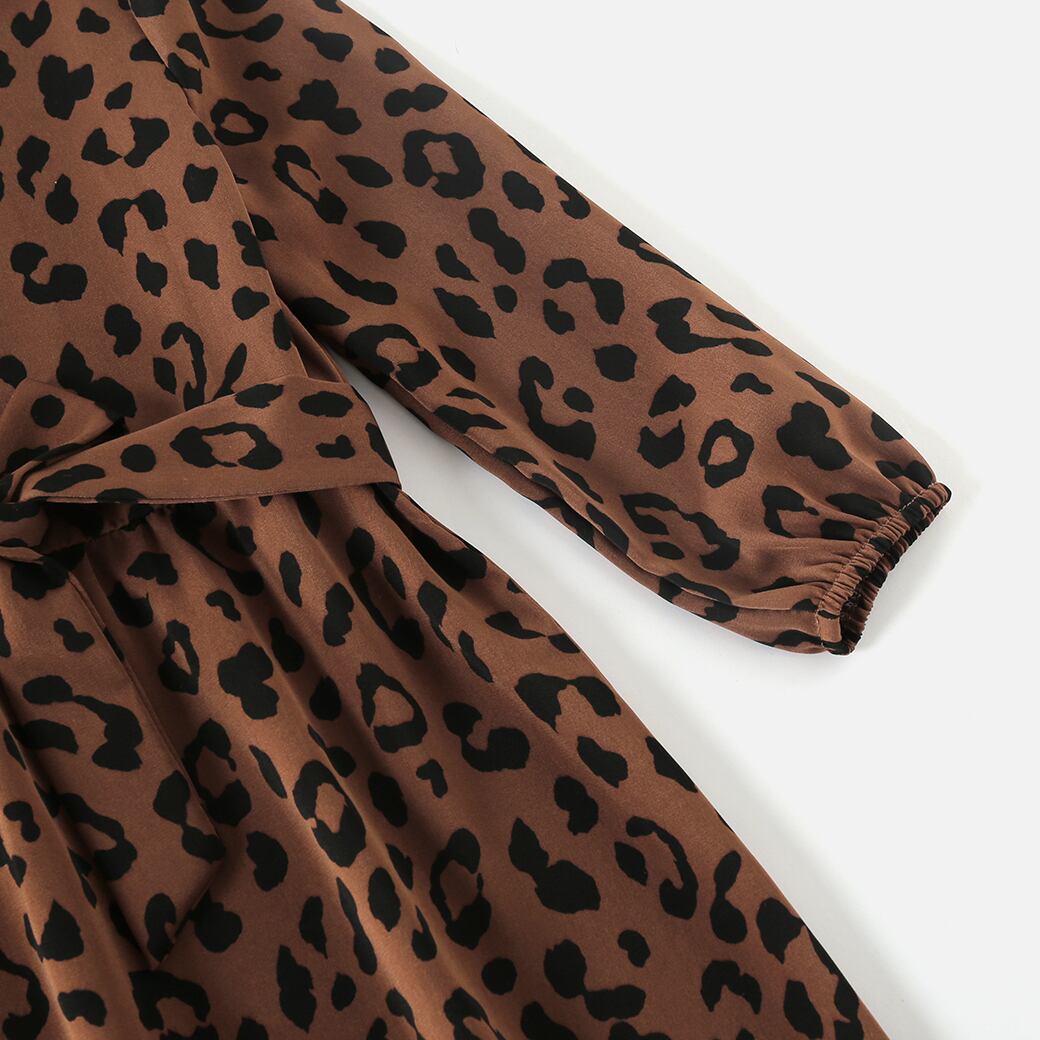 新作 PatPatファミリーマッチング衣装ヒョウ長袖ミディドレスとストライプスプライシングポロシャツセットカップル衣装
