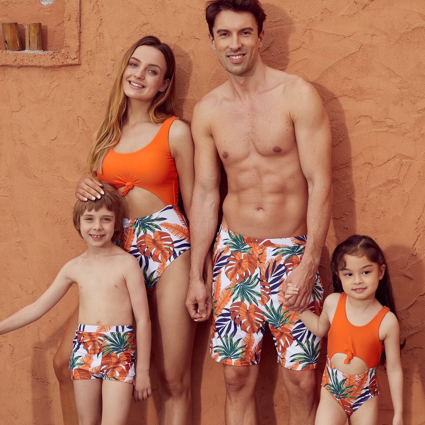 新作 PatPat サマー ファミリー ルック フローラル プリント スプライス 無地 ワンピース マッチング 水着