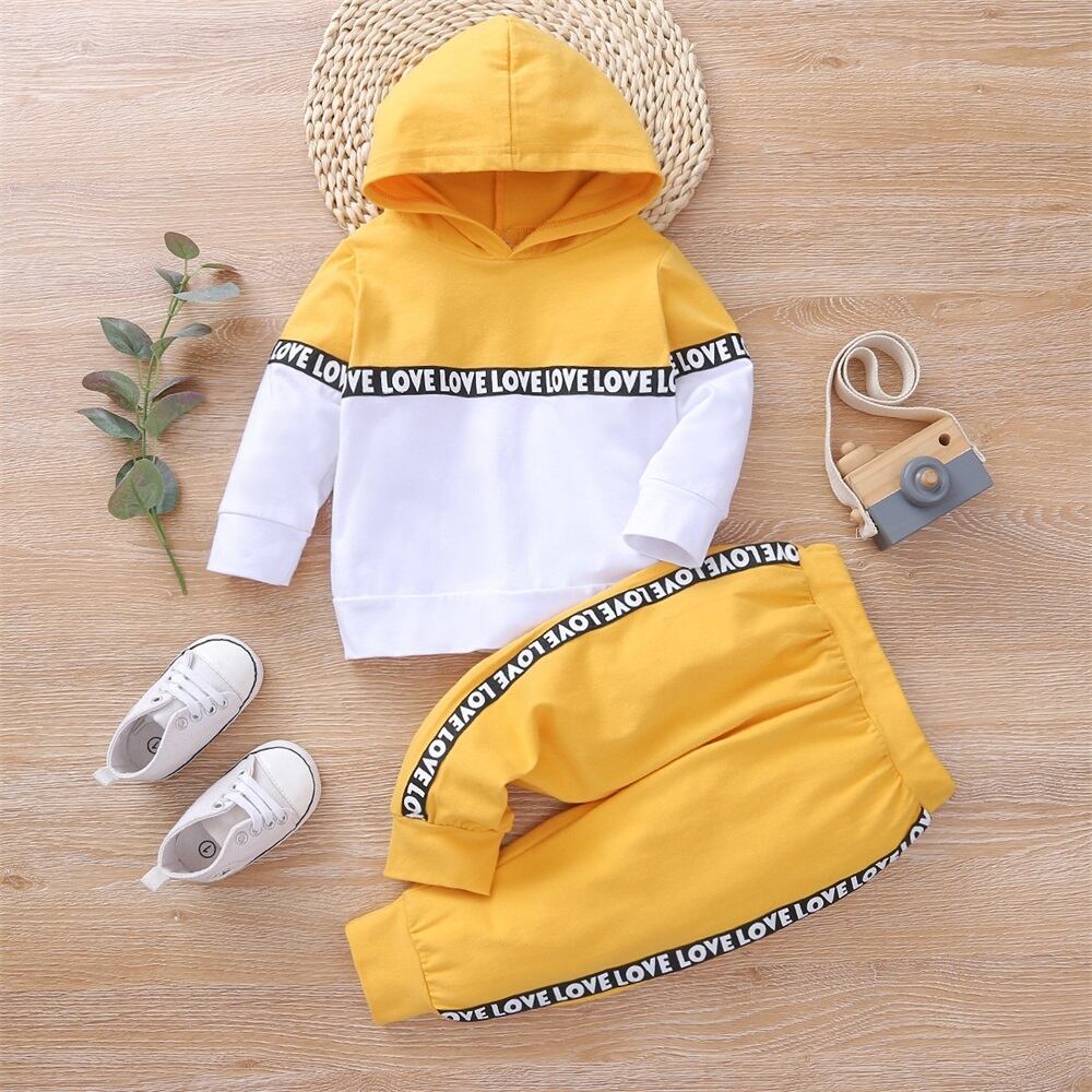 新作 PatPat 2pcs レタープリント スプライス カラーブロック フード付き 長袖 ベビーセット