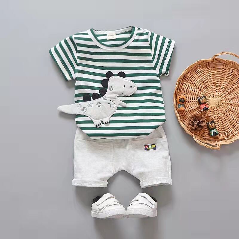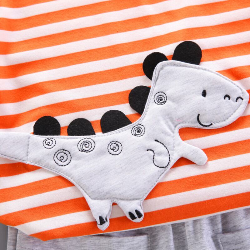 新作 PatPat 2 個幼児男の子恐竜刺繍ストライプ T シャツ & ショーツ セット