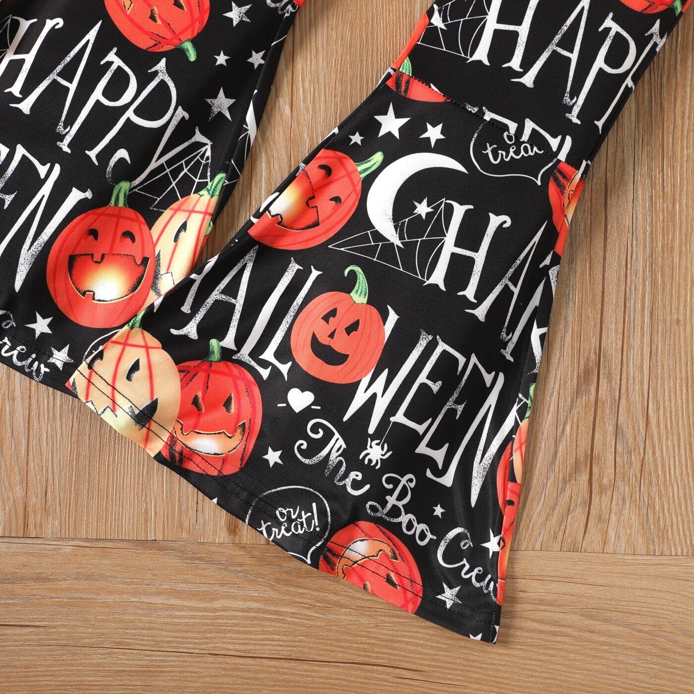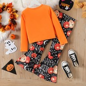 新作 PatPat s Kid Girl パンプキンプリント長袖Tシャツとフレアパンツの2点セット ガールズ