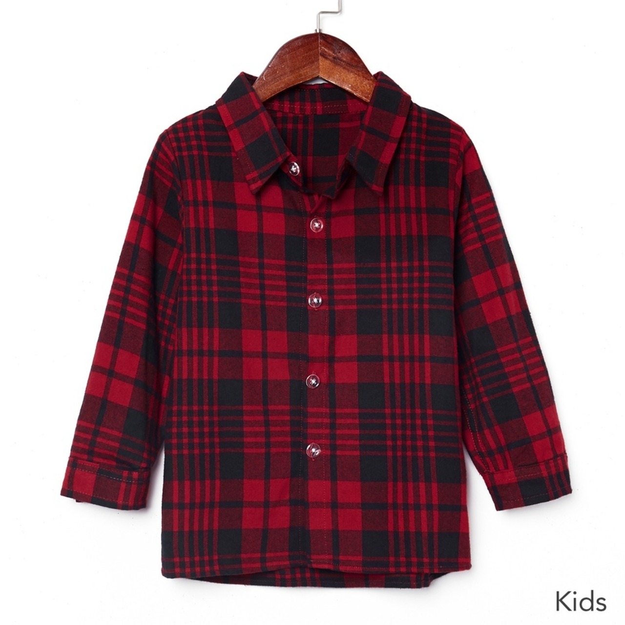 新作 PatPat チェック ストライプ コットン ファミリー マッチング ボタン フロント シャツ ファミリー パーティー Tシャツ