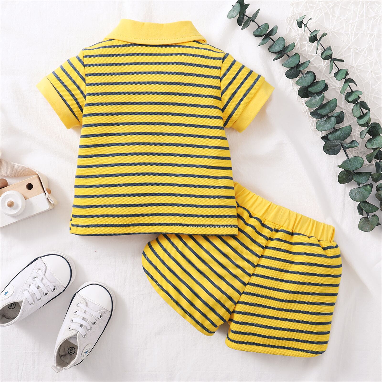 新作 PatPat 2pcs ベビー 男の子/女の子 ボタン イエロー ストライプ 半袖 ポロシャツとショーツセット