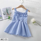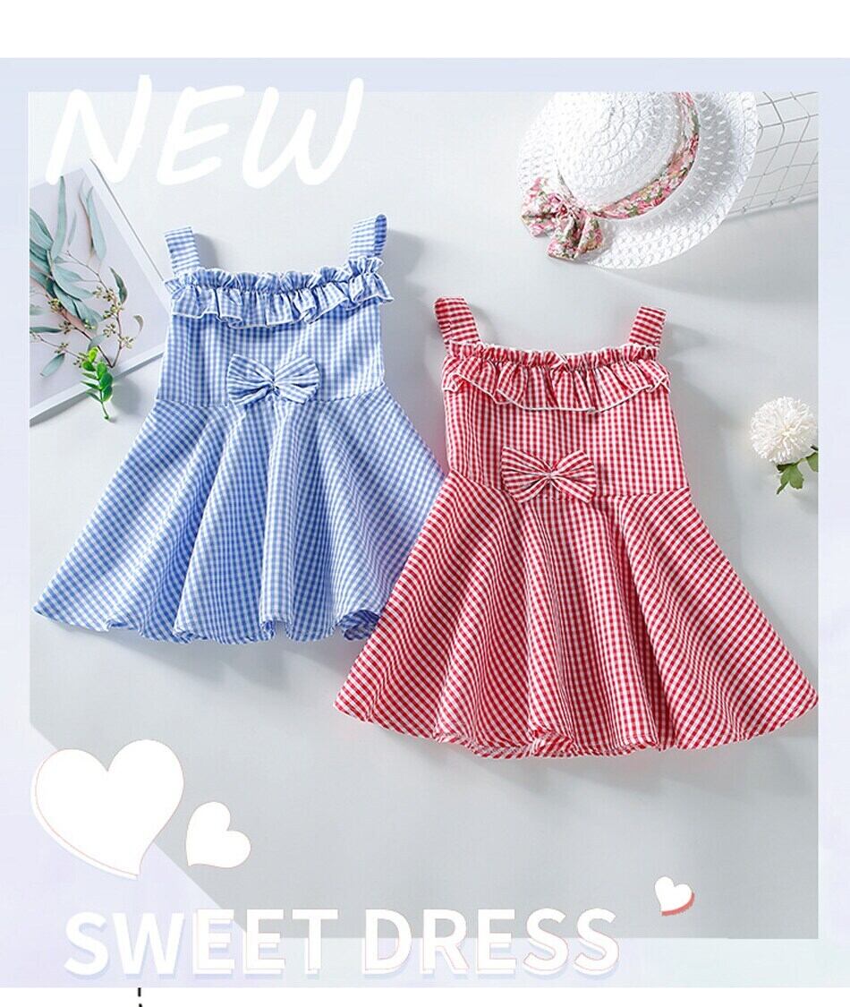 新作 キッズドレス女の子夏子供ドレスベビーチェック柄かわいいドレス子供ちょう結びスリング服ガールドレス