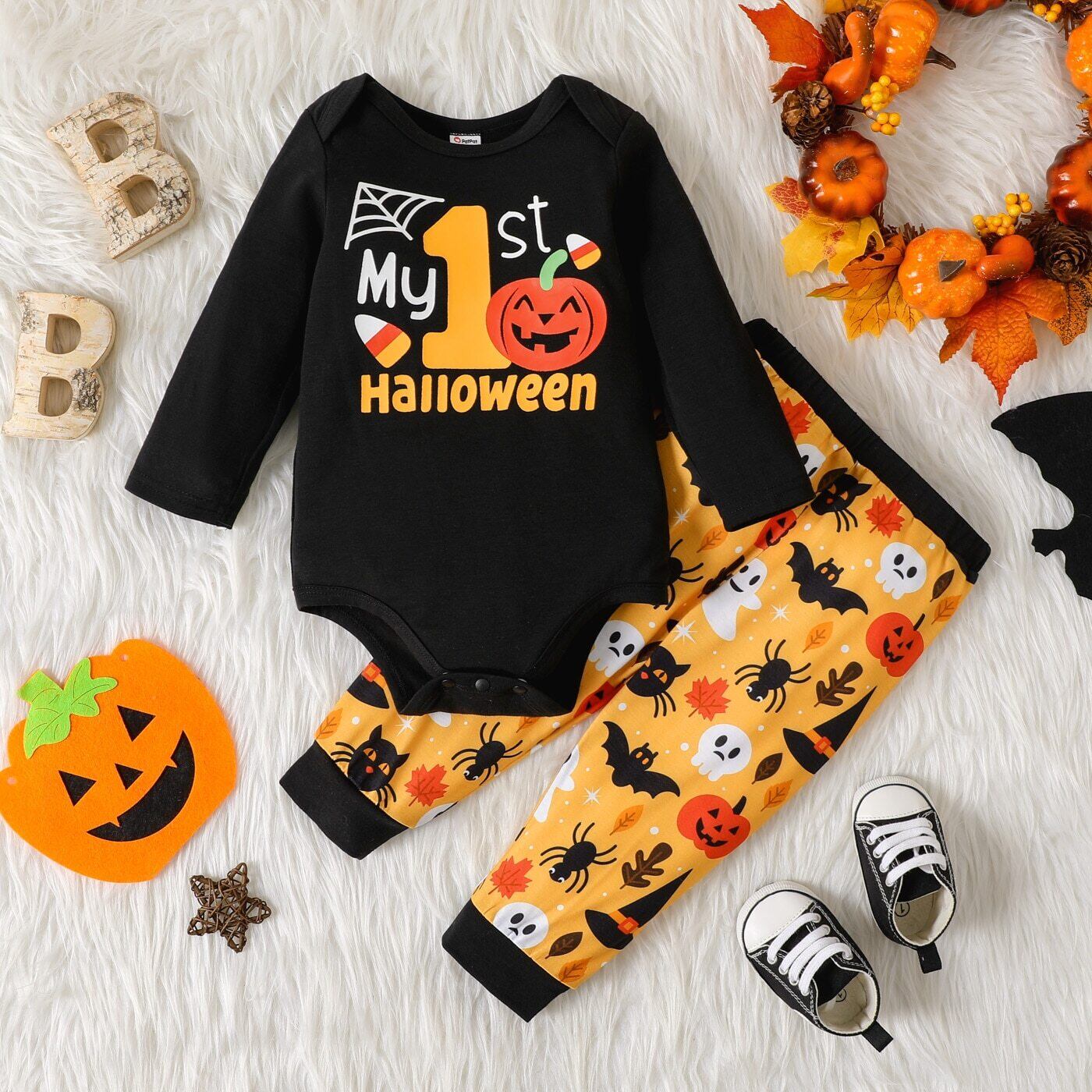 新作 PatPat 2ピース ベビーボーイ 長袖 グラフィックロンパースと総柄プリントパンツセット 男の子服