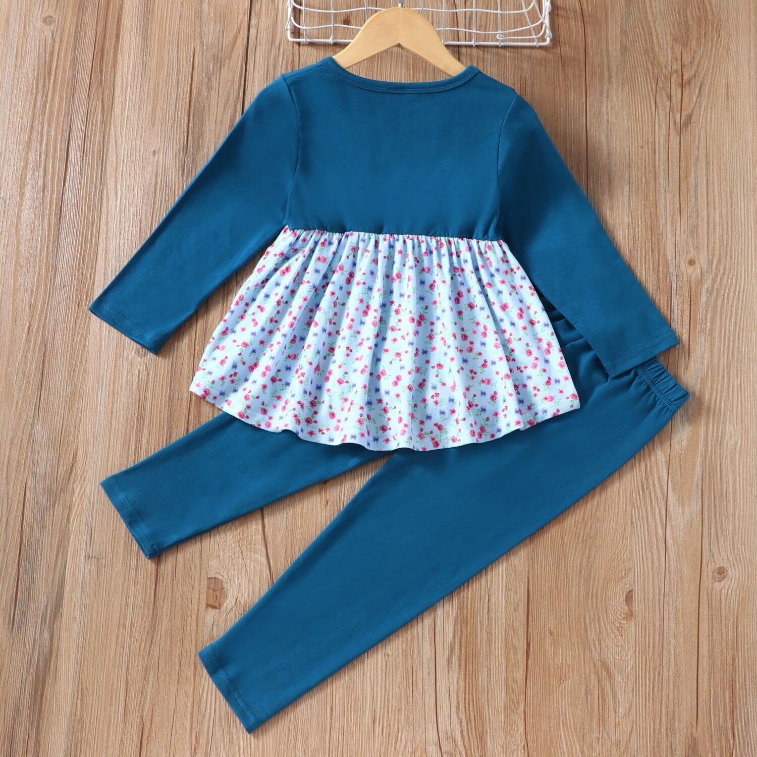 新作 PatPat 2ピース 幼児 女の子 花柄 ステッチ カラーブロック 長袖トップと伸縮性パンツセット