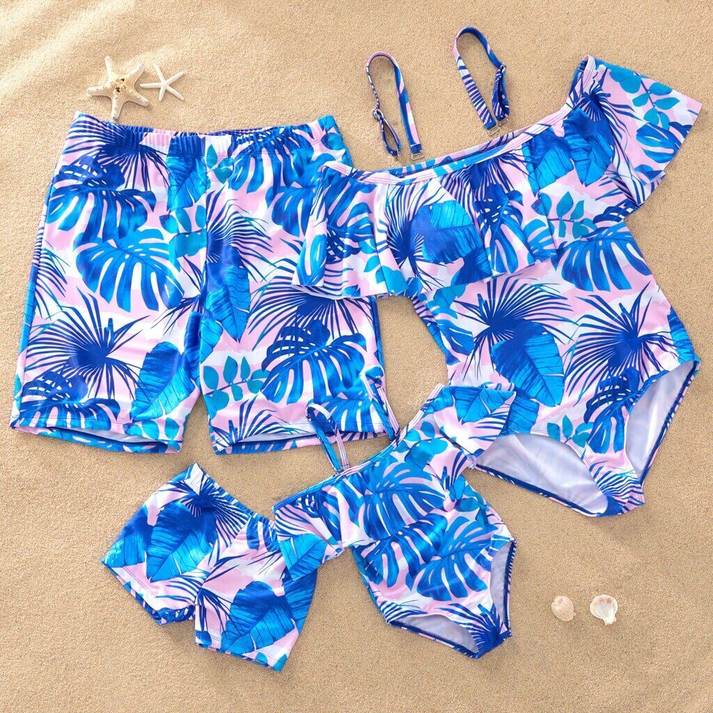 新作 PatPat 夏 モザイク ピンク ブルー ココナッツ リーフ プリント 水着 ファミリー マッチング ファミリー ルック 水着