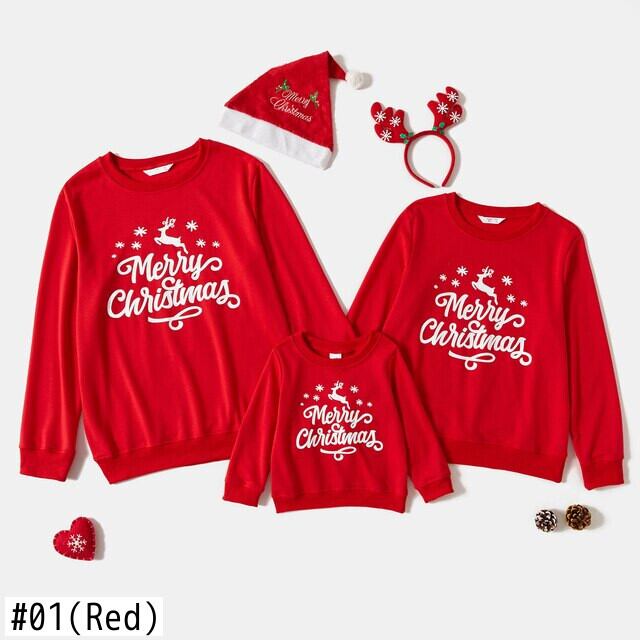 新作 PatPat メリー クリスマス レター プリント レッド ファミリー マッチング 長袖 スウェットシャツ