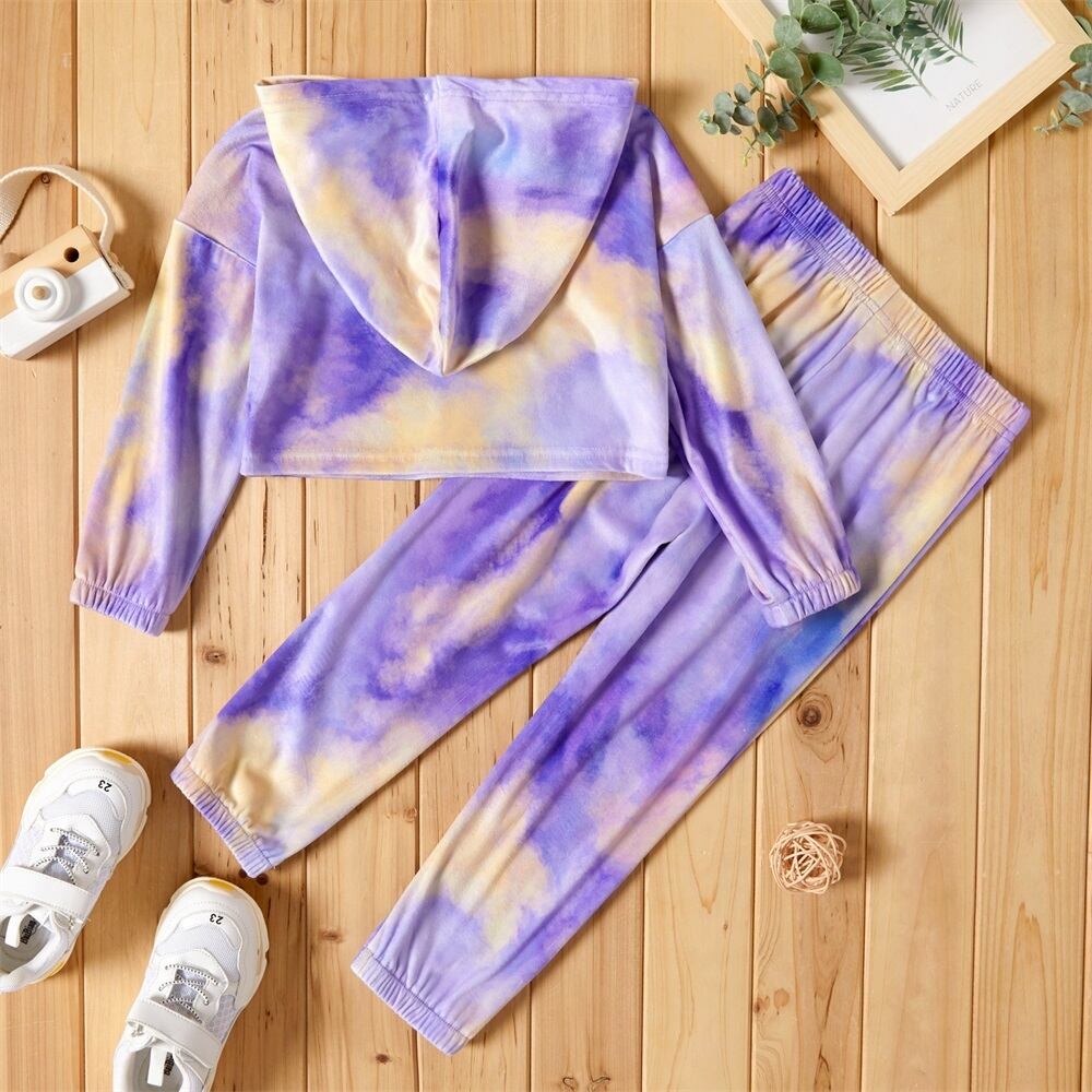 新作 PatPat 2ピース 幼児 女の子 タイダイ パーカーと伸縮性パンツセット
