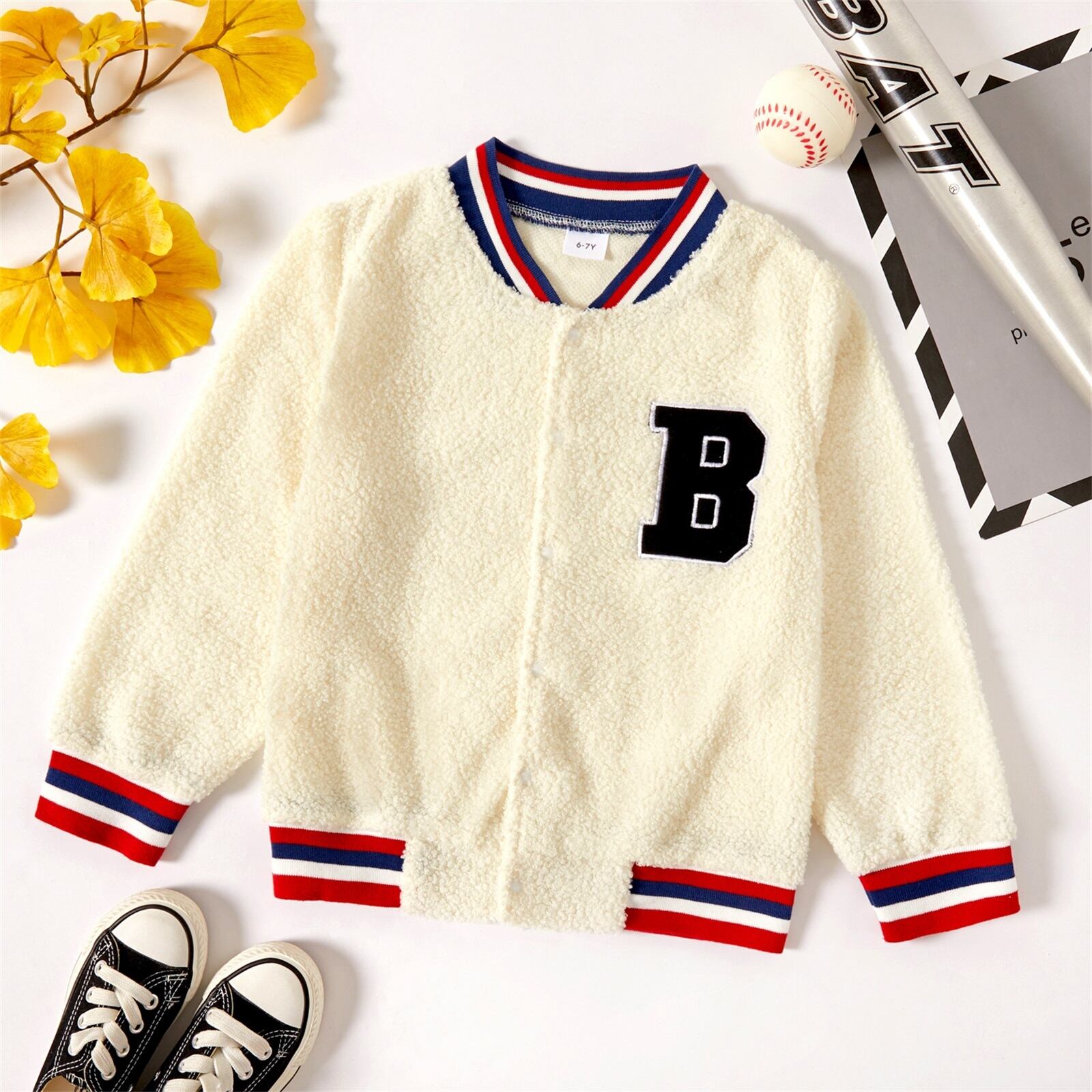 新作 PatPat キッド ボーイ レター 刺繍 ストライプ ファジー テディ ボンバー ジャケット