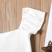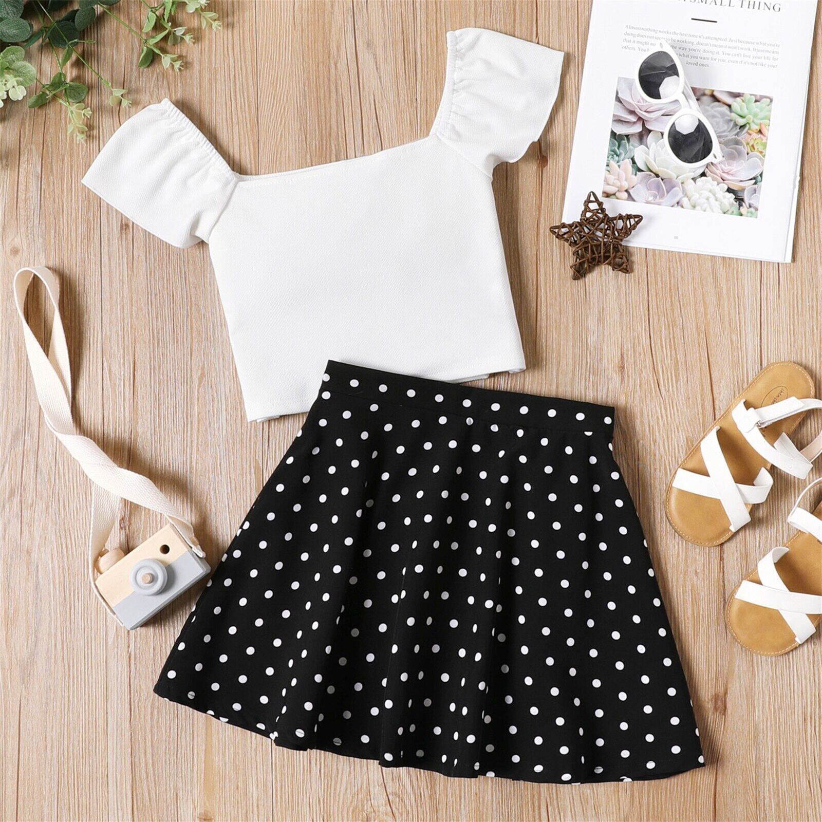 新作 PatPat 2ピース キッド ガール スクエアネック 半袖 白Tシャツ 水玉スカート セット