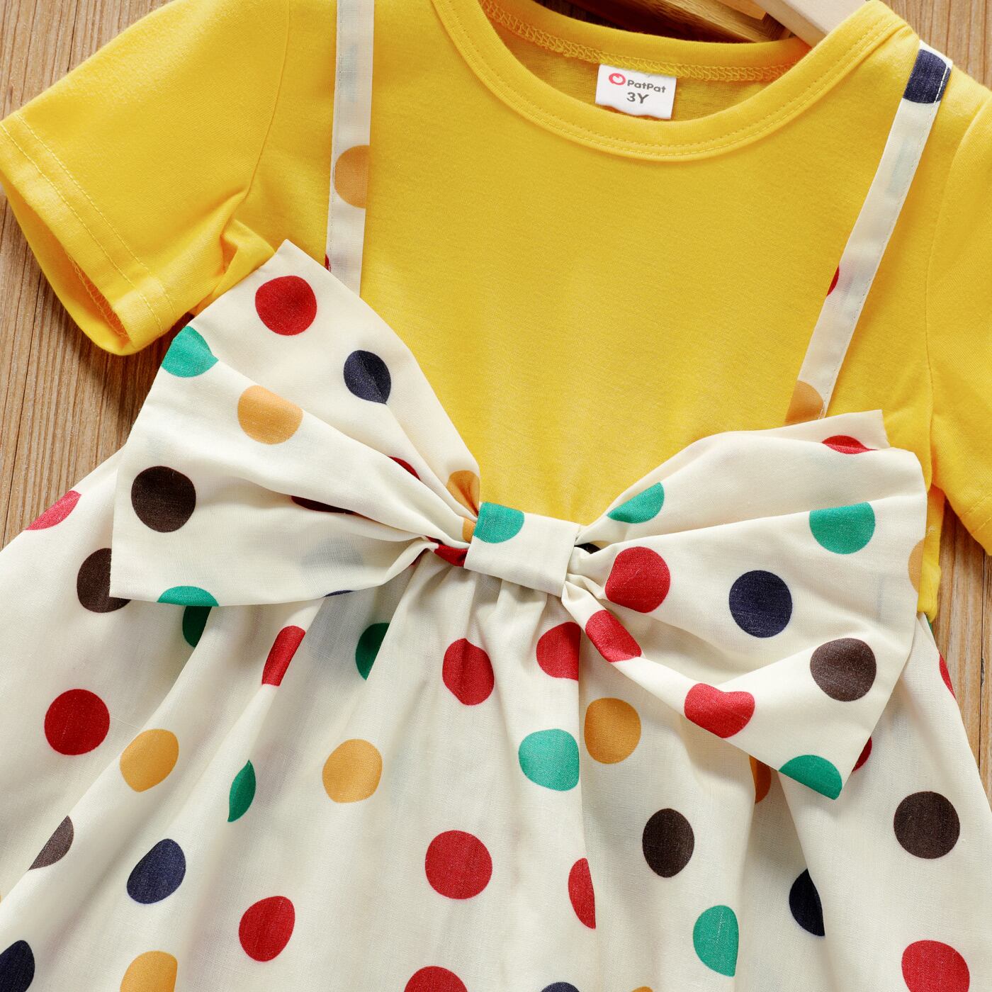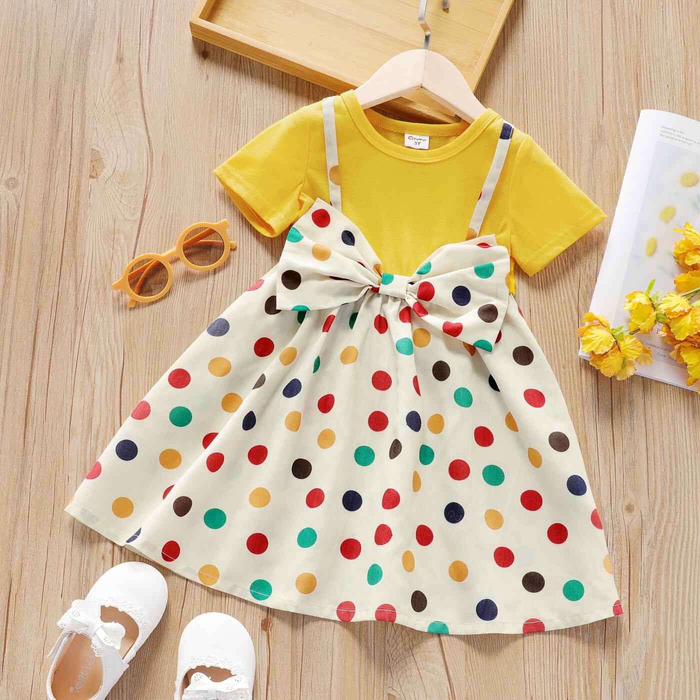 新作 PatPat トドラーガール フェイクツー ポルカドット 蝶結び 半袖ドレス