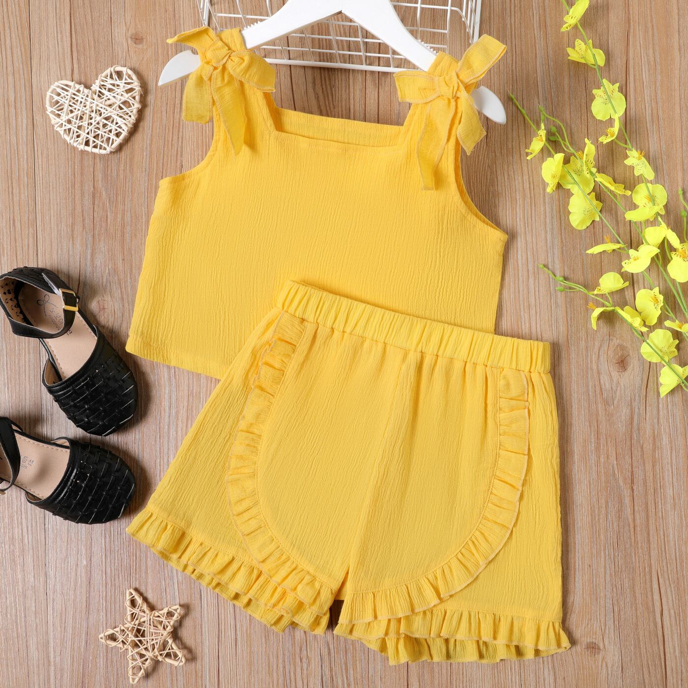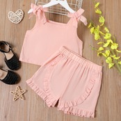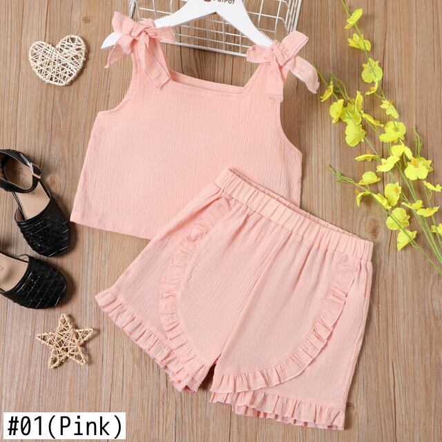 新作 PatPat 2ピース キッド ガール 綿100% 蝶結び 無地 クレープキャミソールとフリルショーツセット