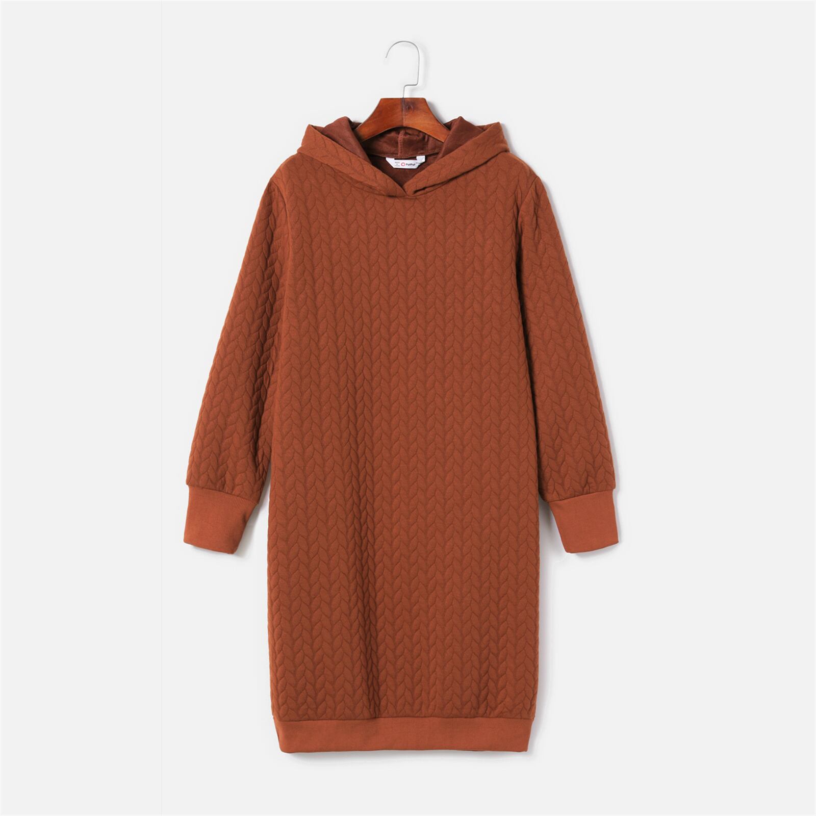 新作 PatPat ソリッド コーヒー テクスチャード ロングスリーブ パーカー ドレス ママと私