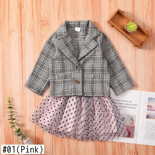 新作 PatPat 2点セット チェック柄コートとメッシュドットスカート ベビーセット