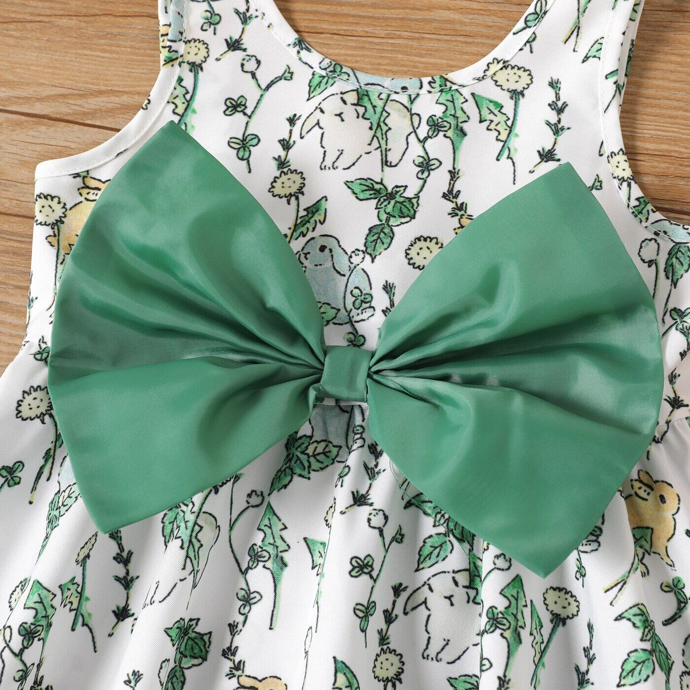 新作 PatPat ベビーガール リボンフロント オールオーバー ラビットプリント タンクドレス