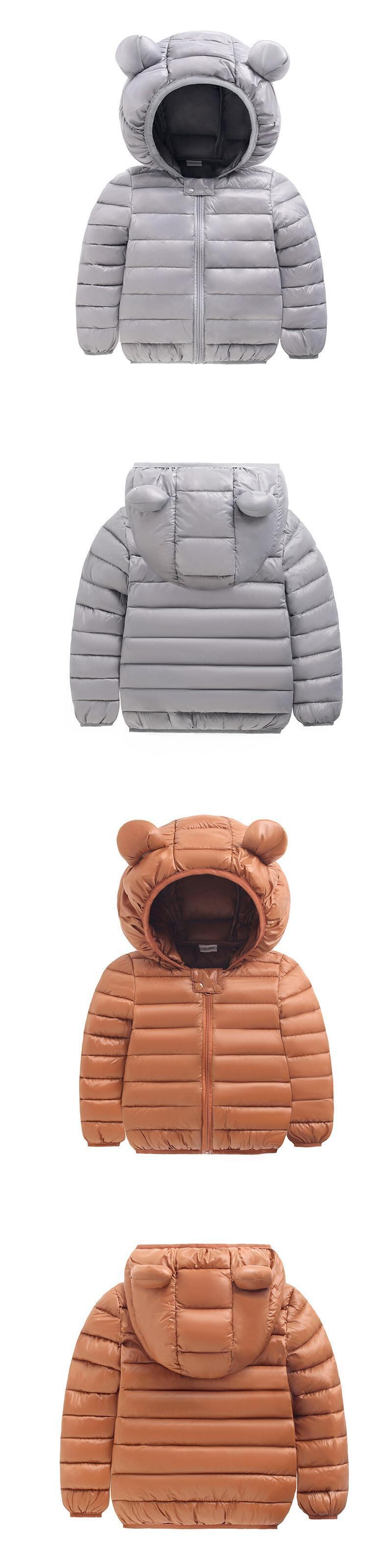 新作 PatPat 秋冬 ベビー 幼児 おしゃれ 3D 耳プリント 無地 フード付き ダウンコート ベビー 男の子 女の子 コート
