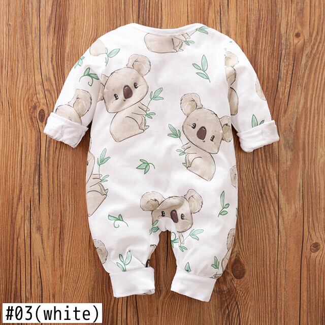 新作 PatPat 春と秋の赤ちゃん男の子と女の子コアラ プリント ジャンプ スーツ ワンピース在庫ベビー服 0-1 歳
