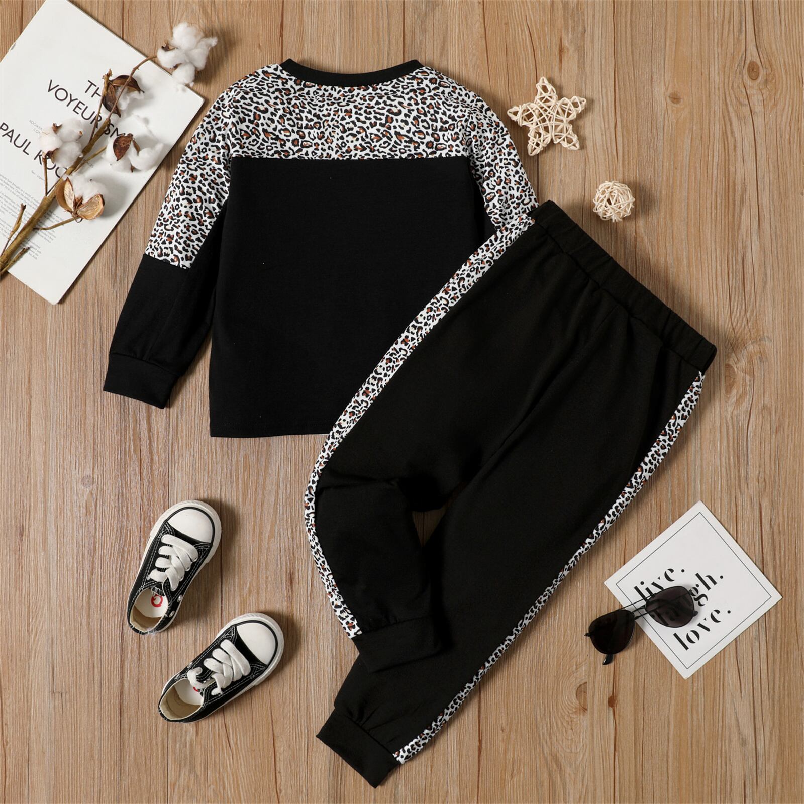 新作 PatPat 2ピース 幼児 女の子 レター ヒョウ柄 スウェットシャツとパンツセット