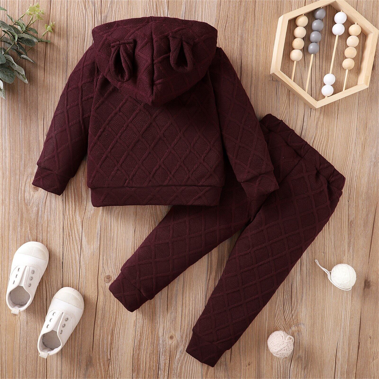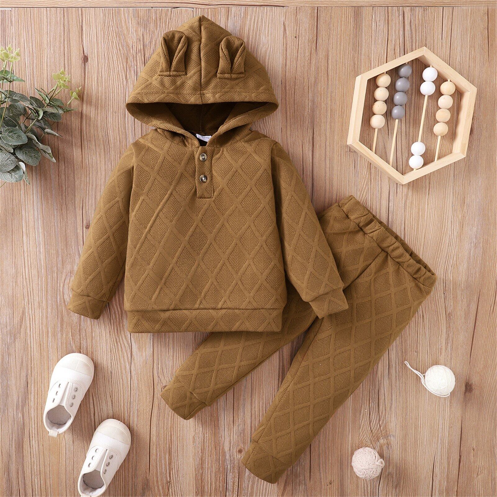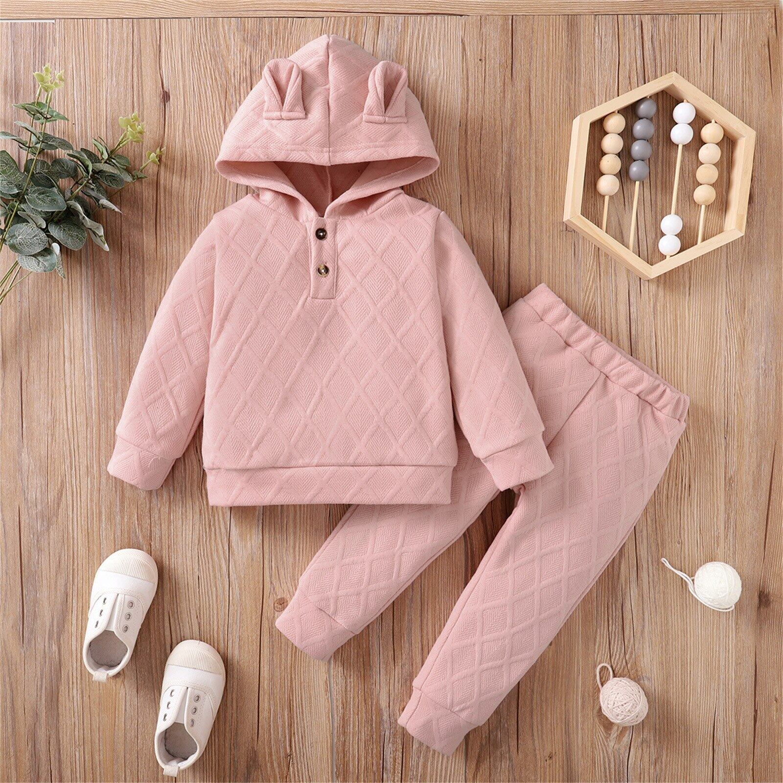 新作 PatPat 2ピース 幼児 女の子 テクスチャード ボタン パーカー スウェットシャツと無地パンツセット