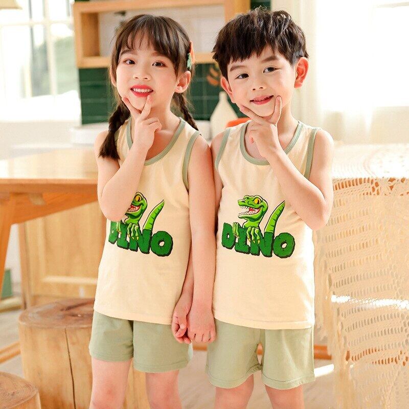 新作 女の赤ちゃんセット夏子供のベストショーツスーツコットンボーイズ漫画ノースリーブ服子供トラックスーツ 2-9Years