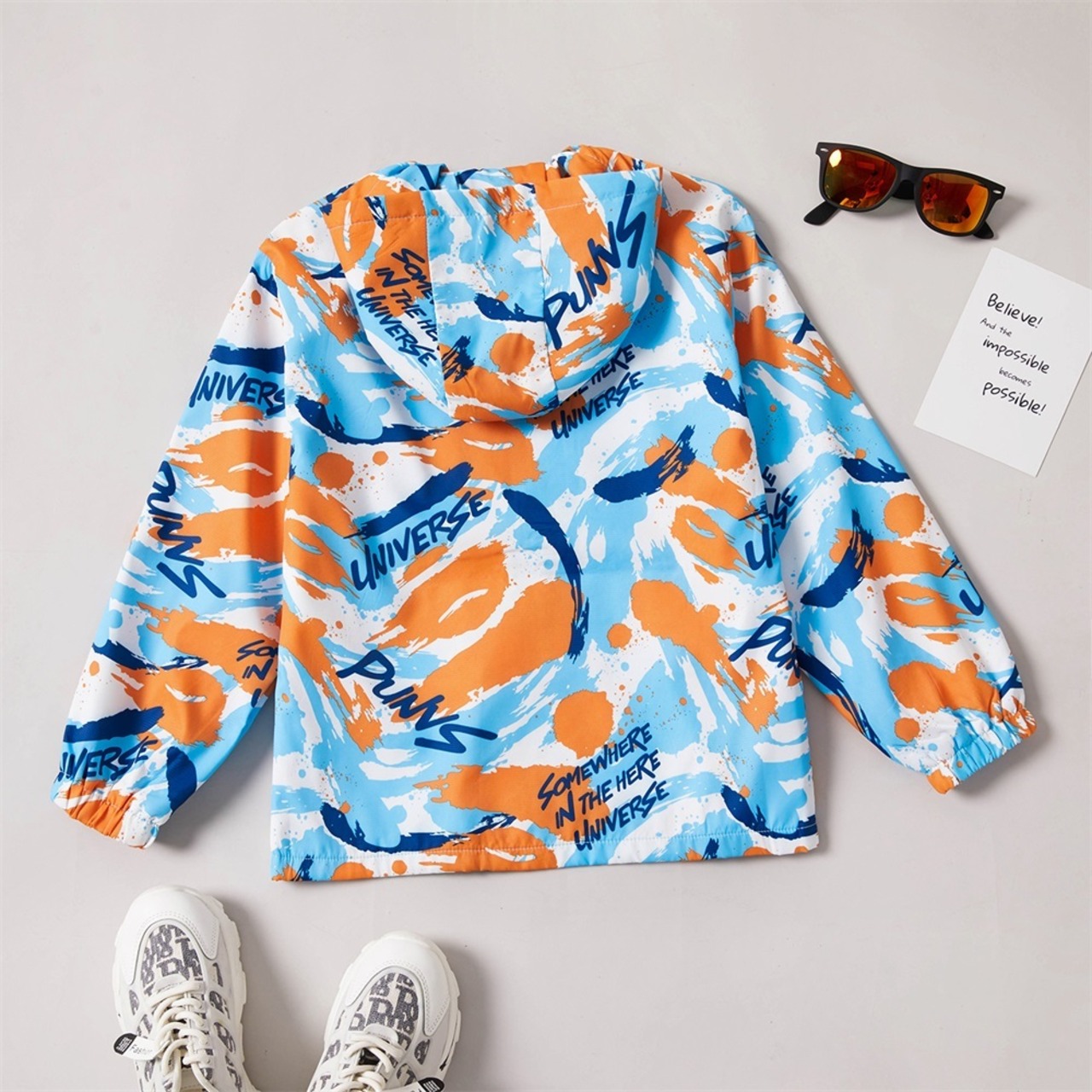 新作 PatPatable キッド ボーイ 文字 絵画 プリント カラーブロック ジッパー 防風 フード付き ジャケット コート
